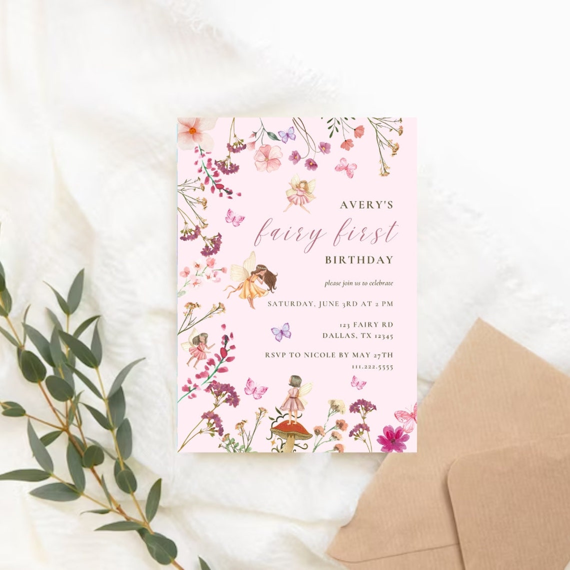 Fairy First Birthday Invitation Magical Fairy Invite Enchanted Fairy ...