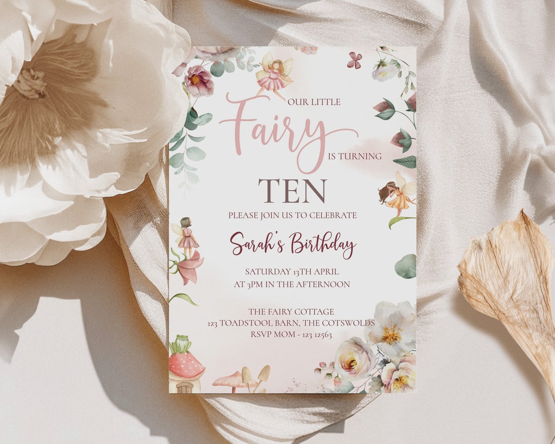 Editable Fairy Birthday Invitation Template Ten, Garden Forest Floral ...