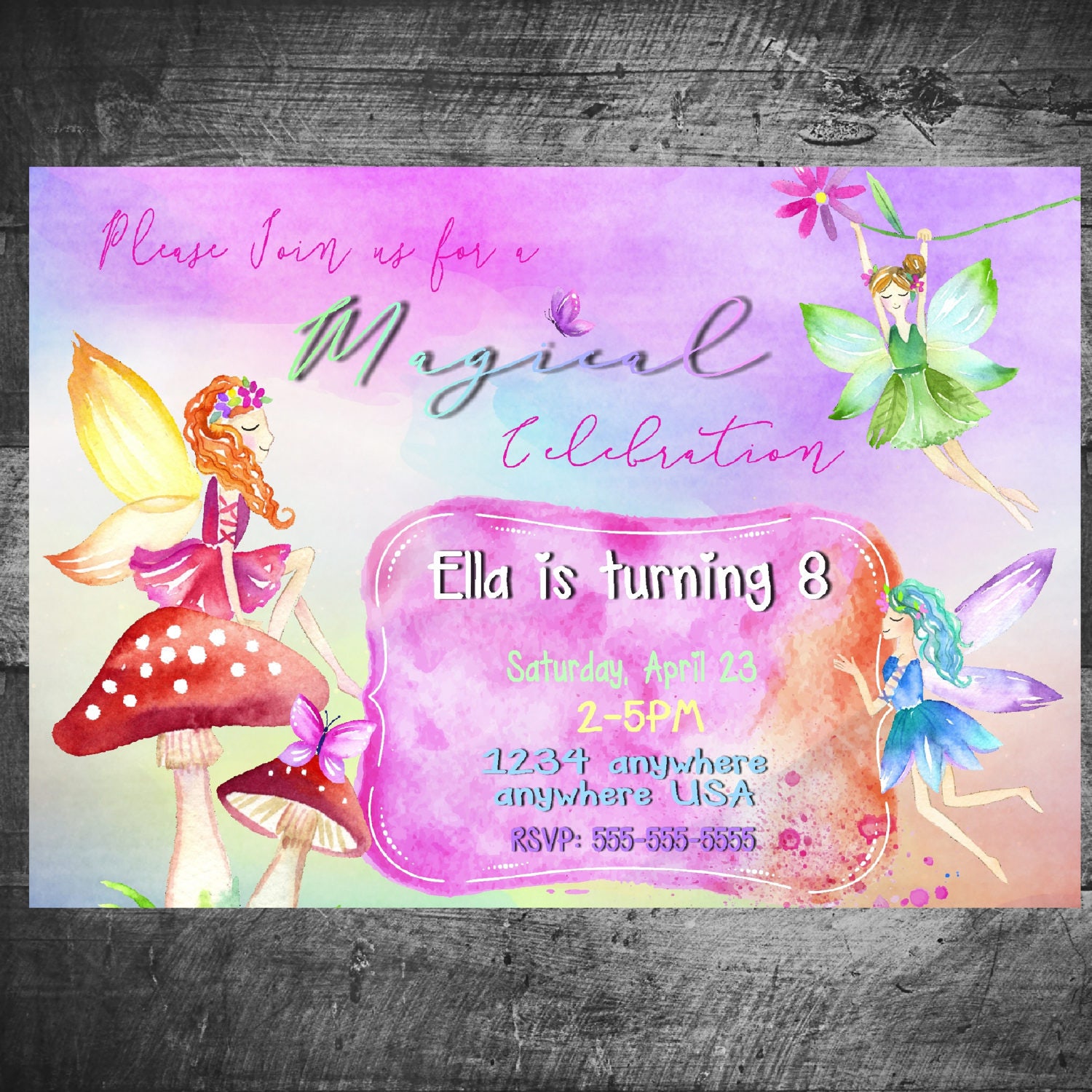 Editable Fairy Birthday Invitation, Fairy Invitation, Any Age Birthday ...