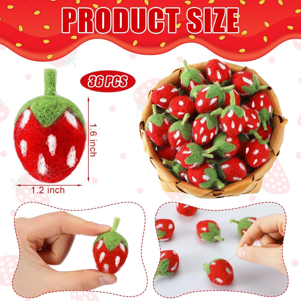 36 PCS Fake Strawberries Felt Fruit Centerpieces Bowl Filler Baby ...