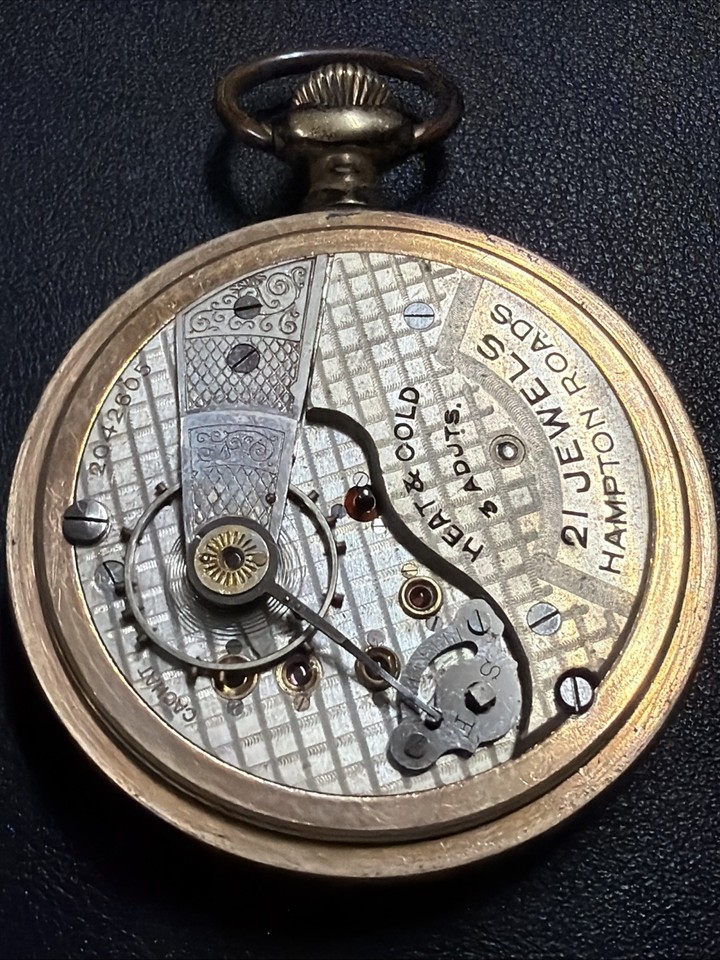 Swiss Fake Railroad Pocket Watch Movement Hampton Roads Size 18s 21j | eBay