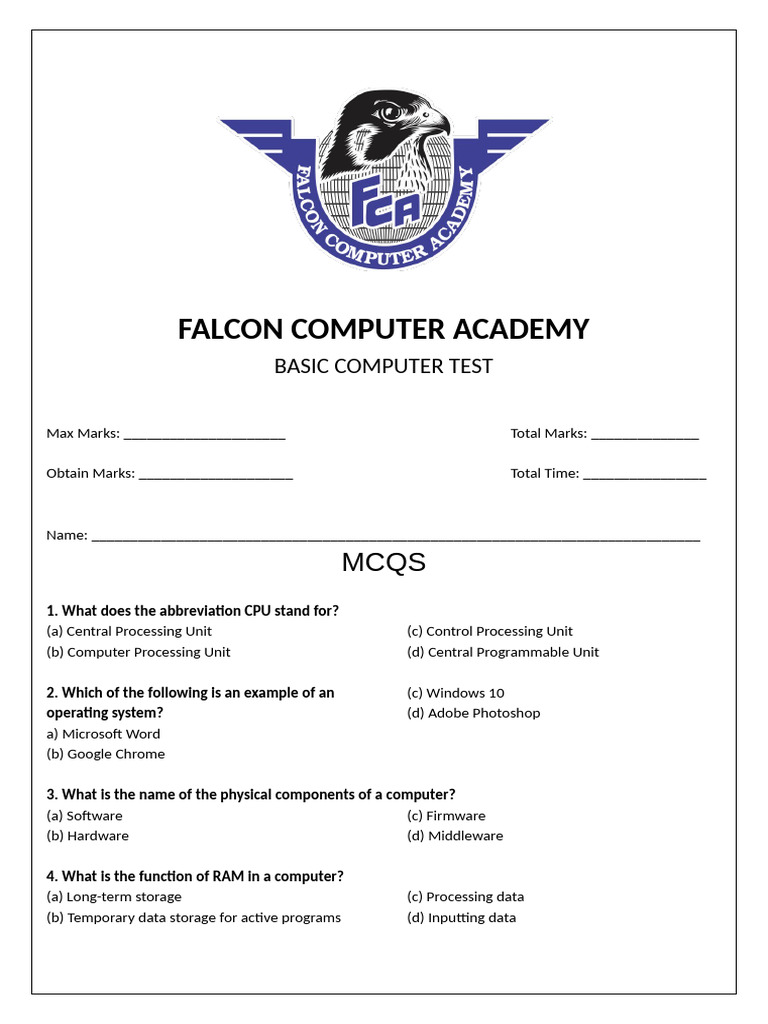 Falcon Computer Academy Test Overview | PDF | Computer Data Storage ...