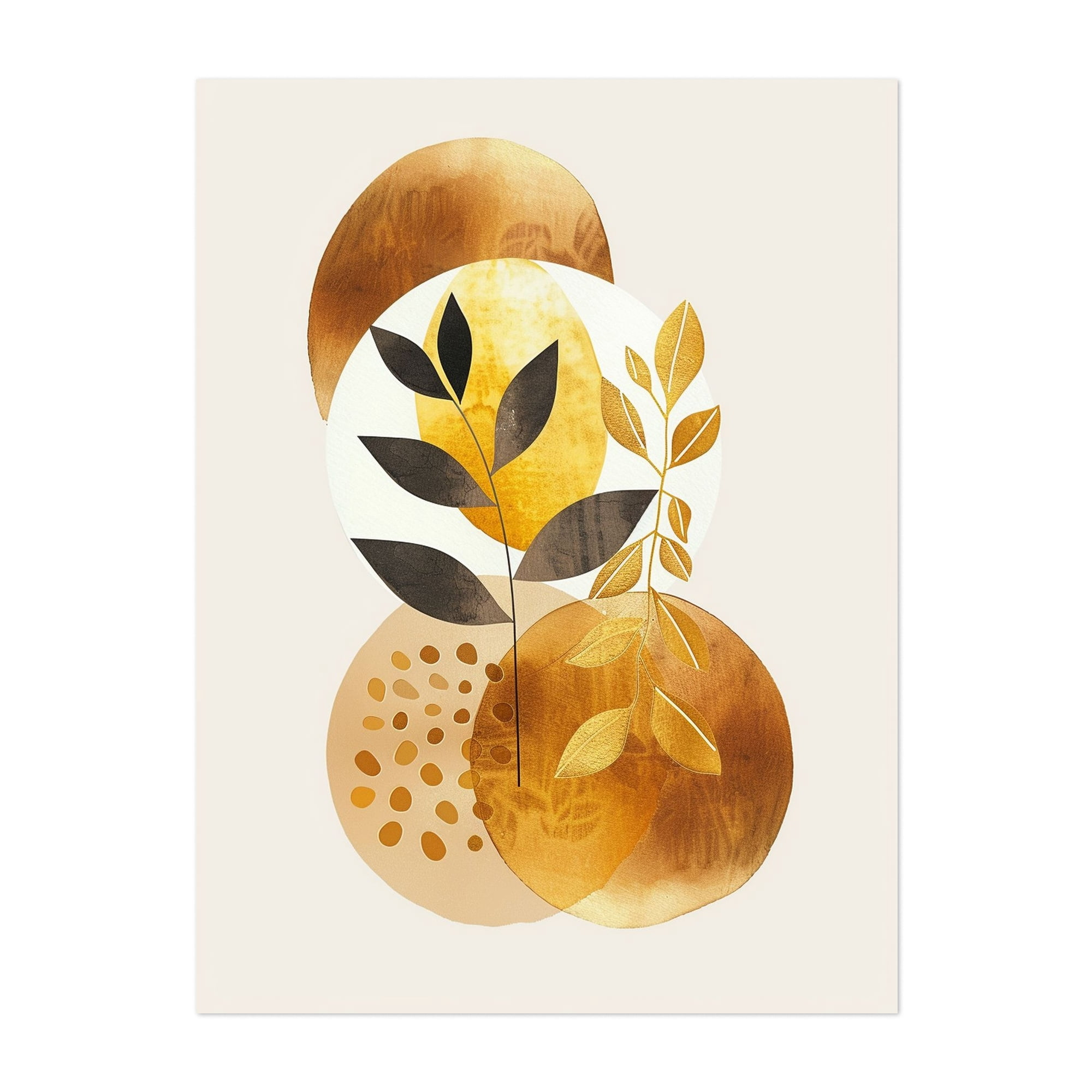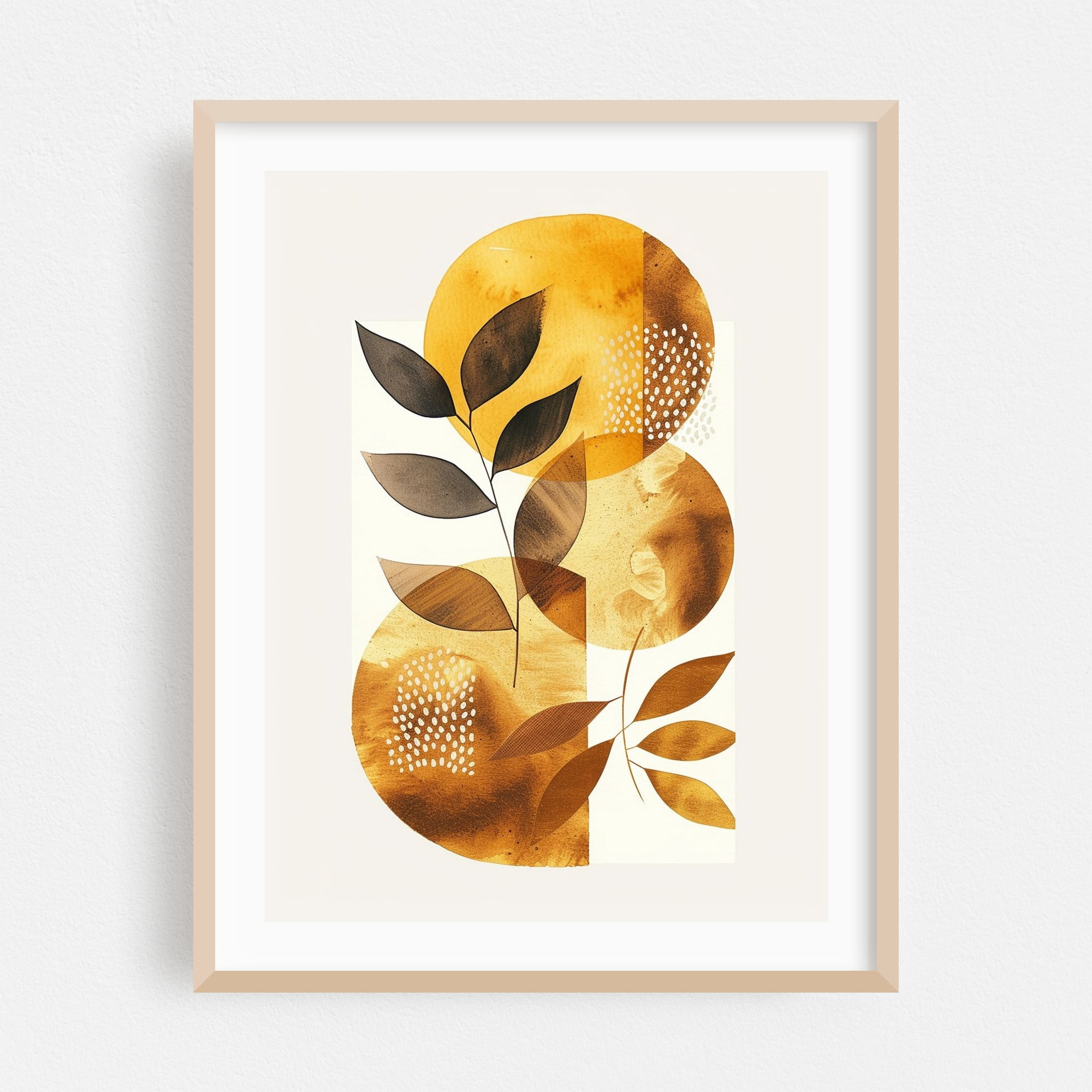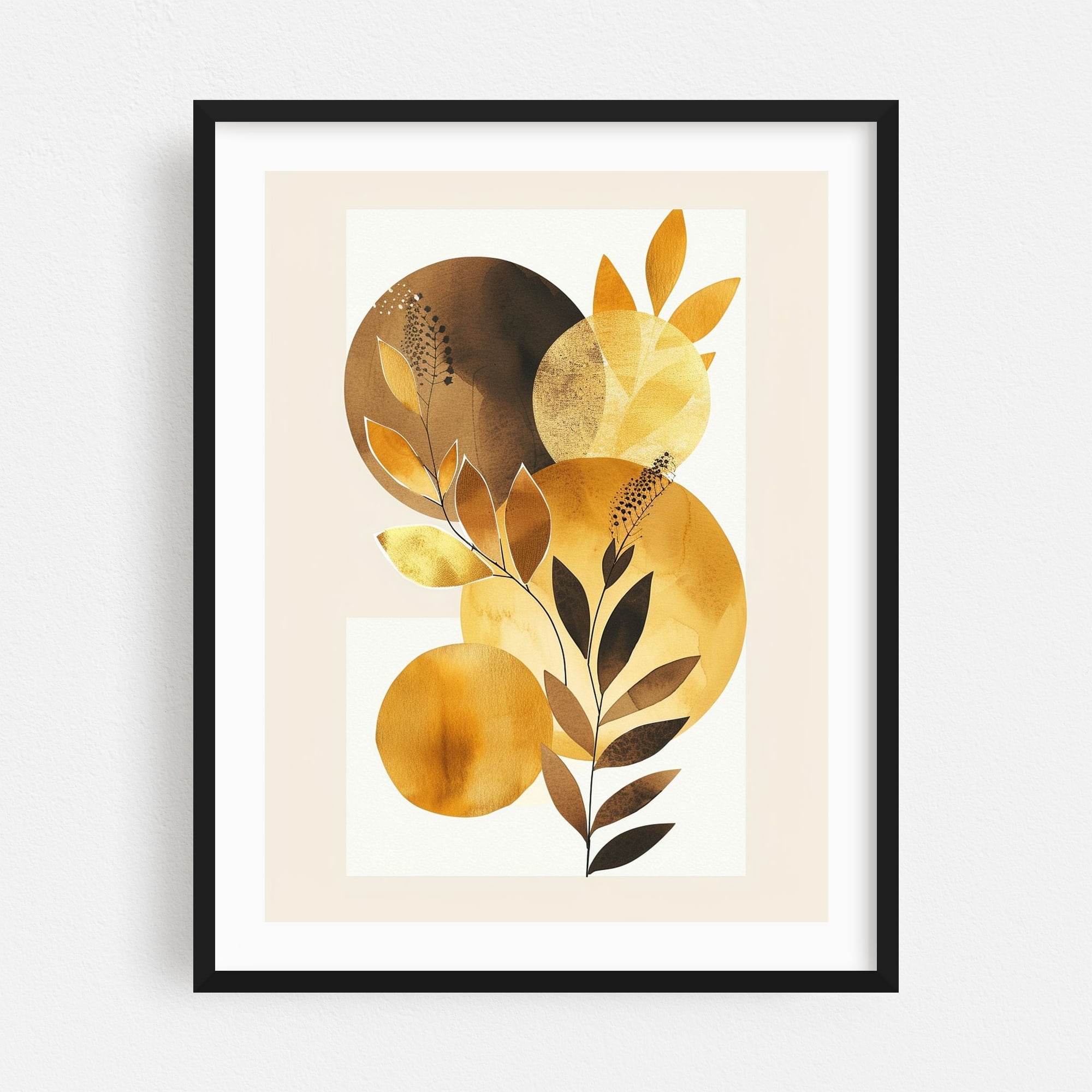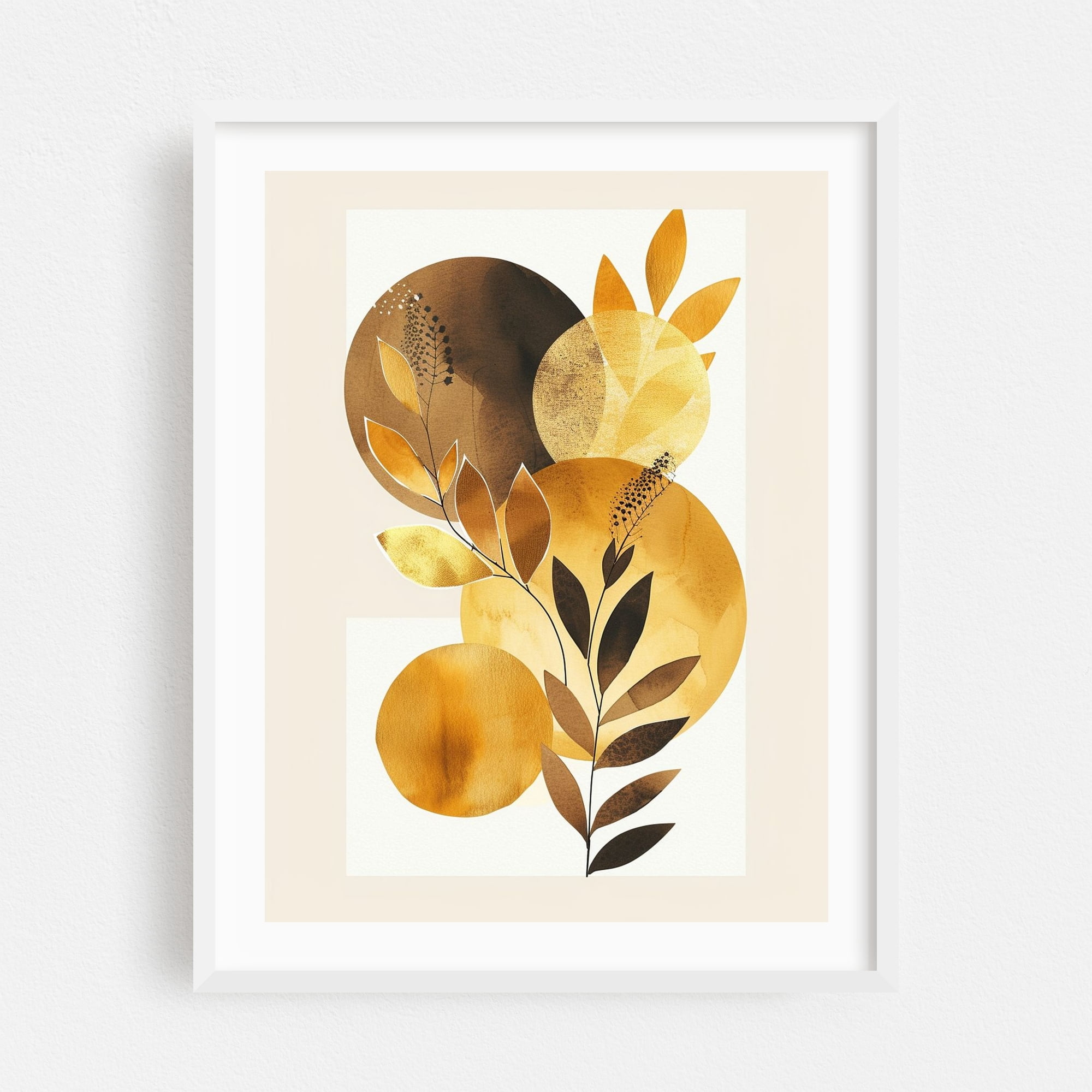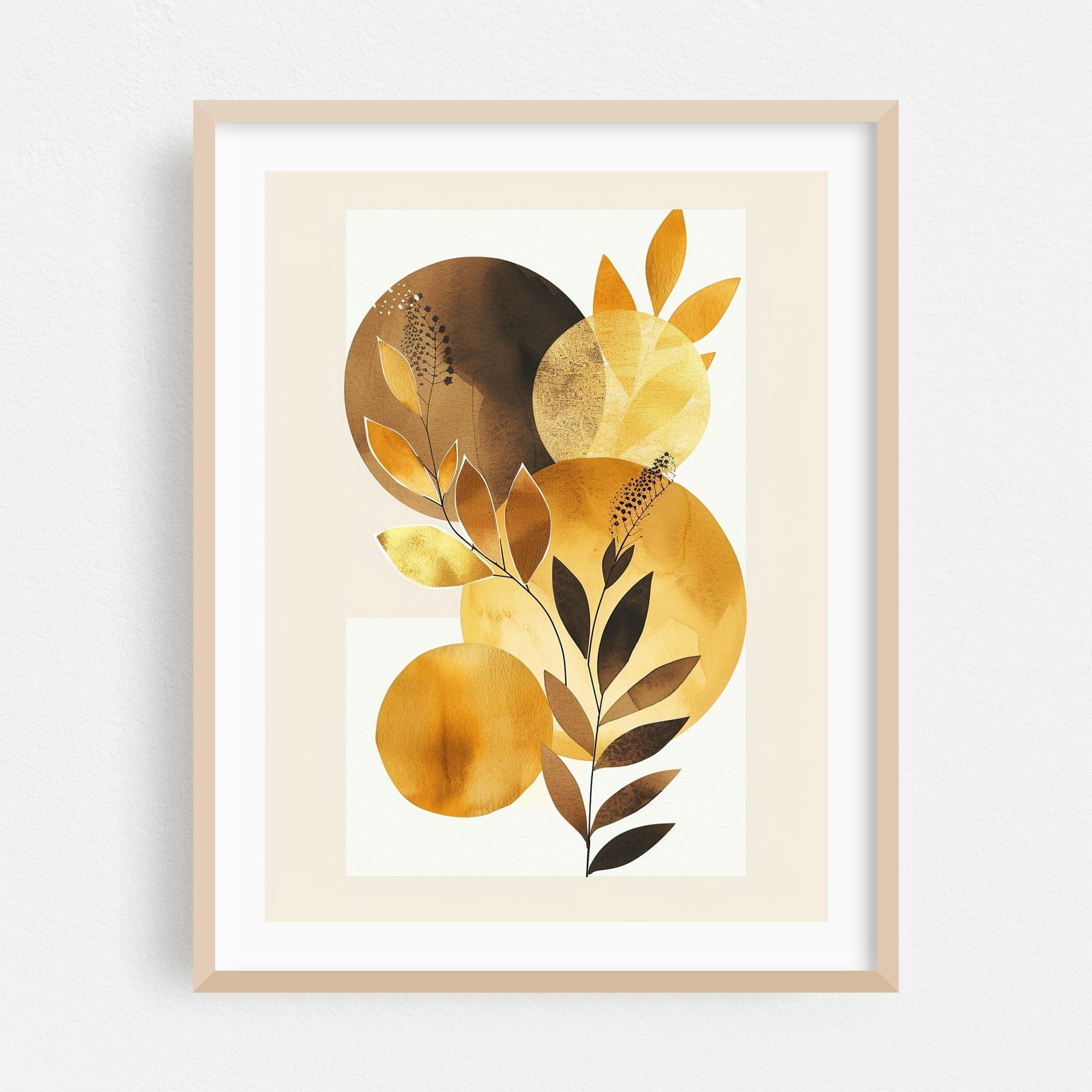 Abstract Botanical Art with Golden Circles and Earthy Tones ...