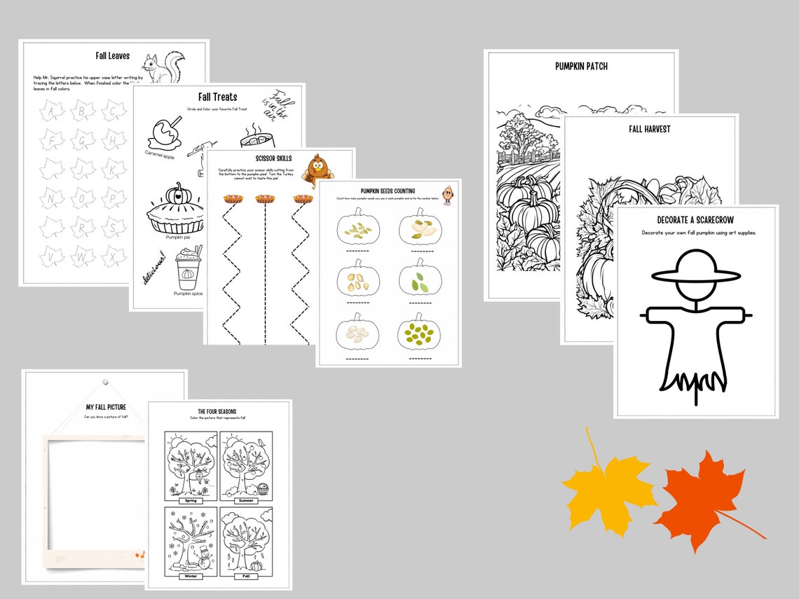 Fall Activity Printable Worksheet Set Printable Children - Etsy