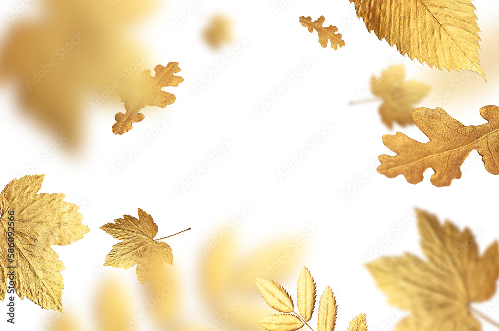 Autumn concept, fall background. Golden flying autumn leaves of ...