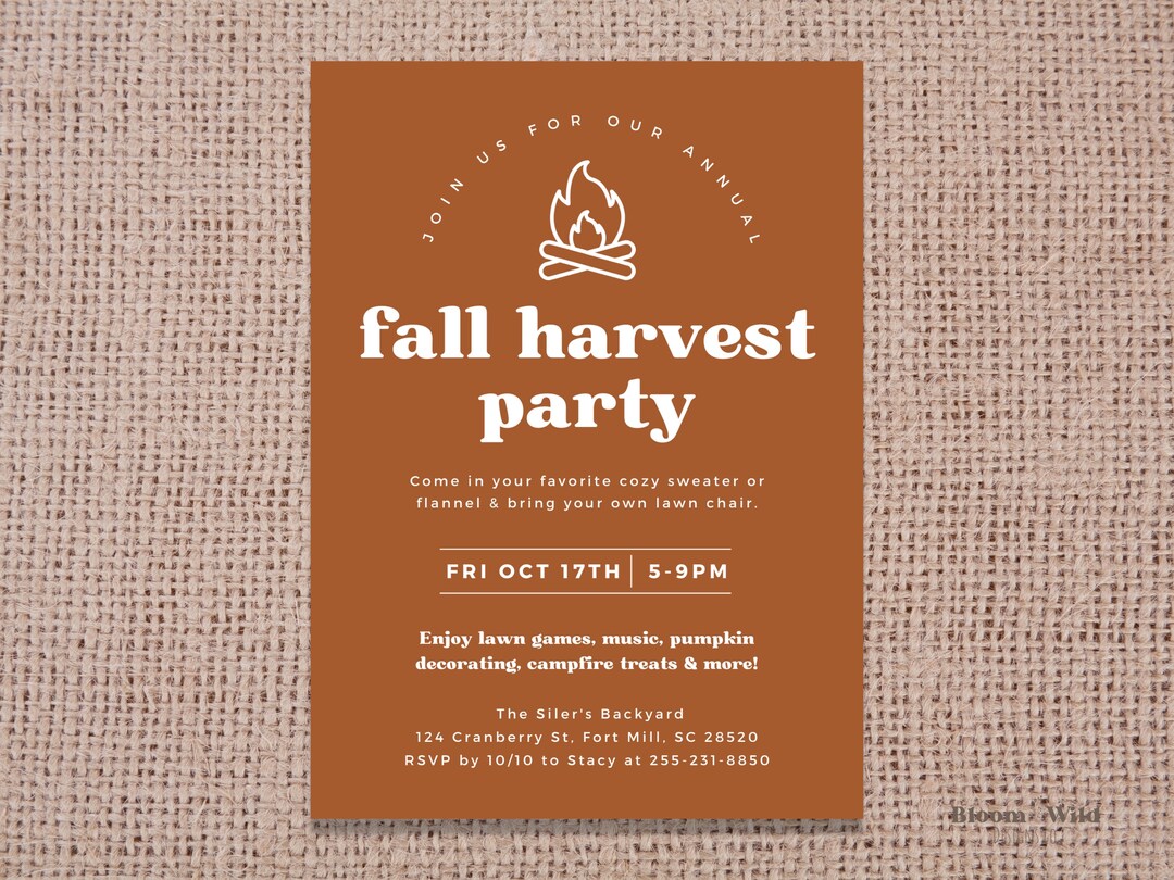Fall Party Invitation | Editable Digital Download Template - Etsy
