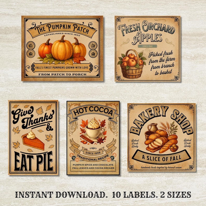 Fall Labels Printable,vintage Pumpkin Lables,autumn Labels Printable ...