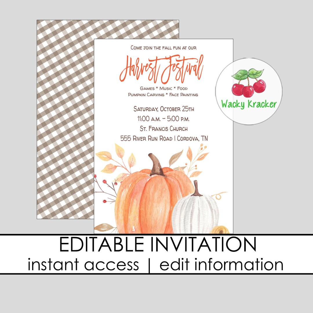 Fall Festival Invitation EDITABLE Harvest Celebration - Etsy