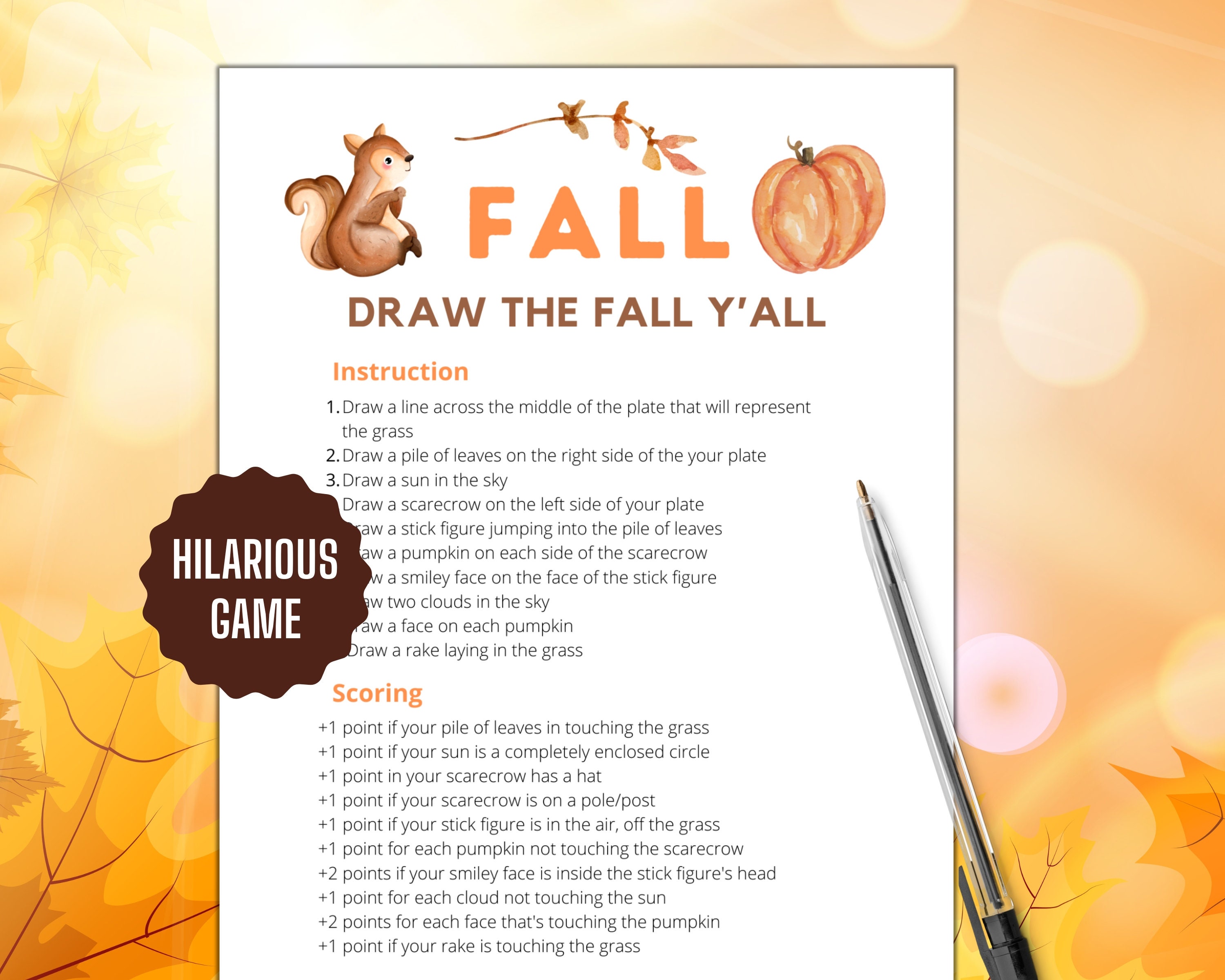 Draw Fall Game | Fall Game | Fall Game Printable | Fall Party Game ...