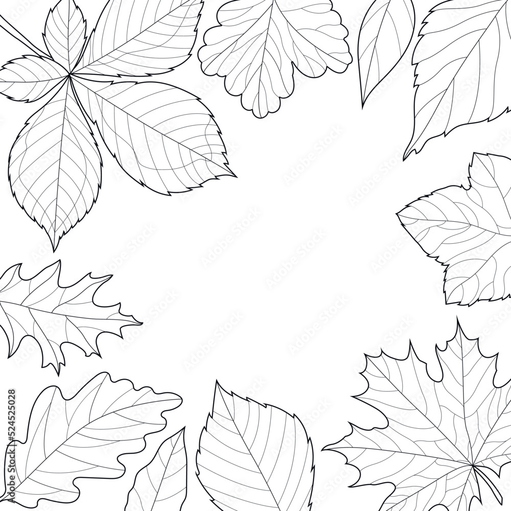 Frame with autumn leaves. Background.Coloring book antistress for ...