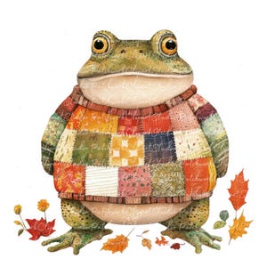 10 Autumn Frog Clipart Bundle, PNG & JPG, Printable Patchwork, Frog in ...