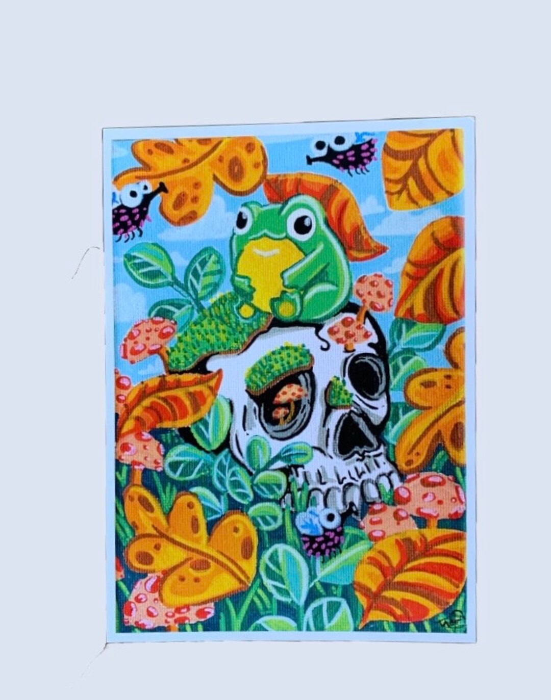 Fall Frog Art Print - 5x7 Cute & Creepy Frog Painting With Skull ...
