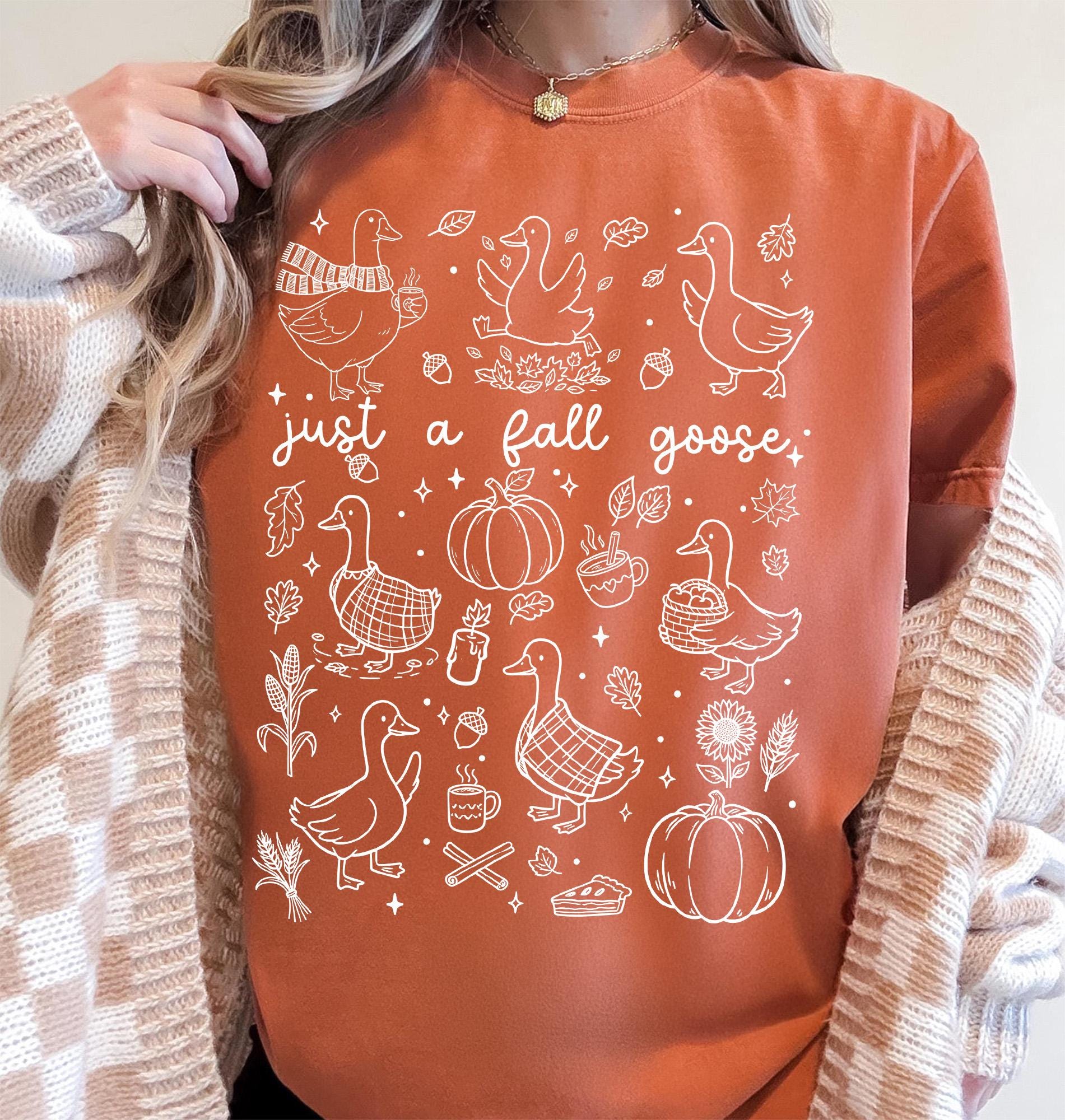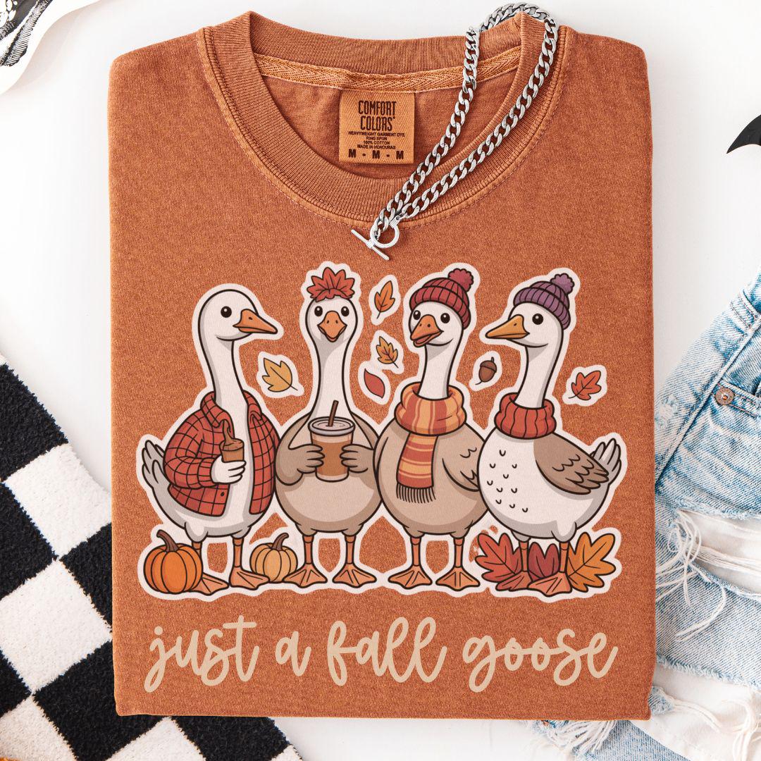 Just a Fall Goose - Cute Autumn Cozy Geese T-Shirt - Fall Goose - T ...