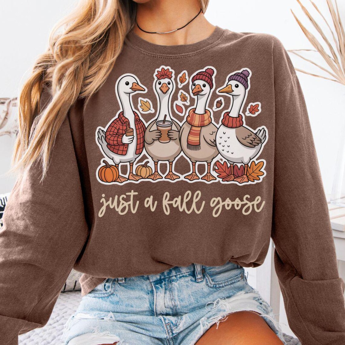 Just a Fall Goose Sweatshirt,autumn Cozy Tshirt,fall Vibes Shirt,silly ...
