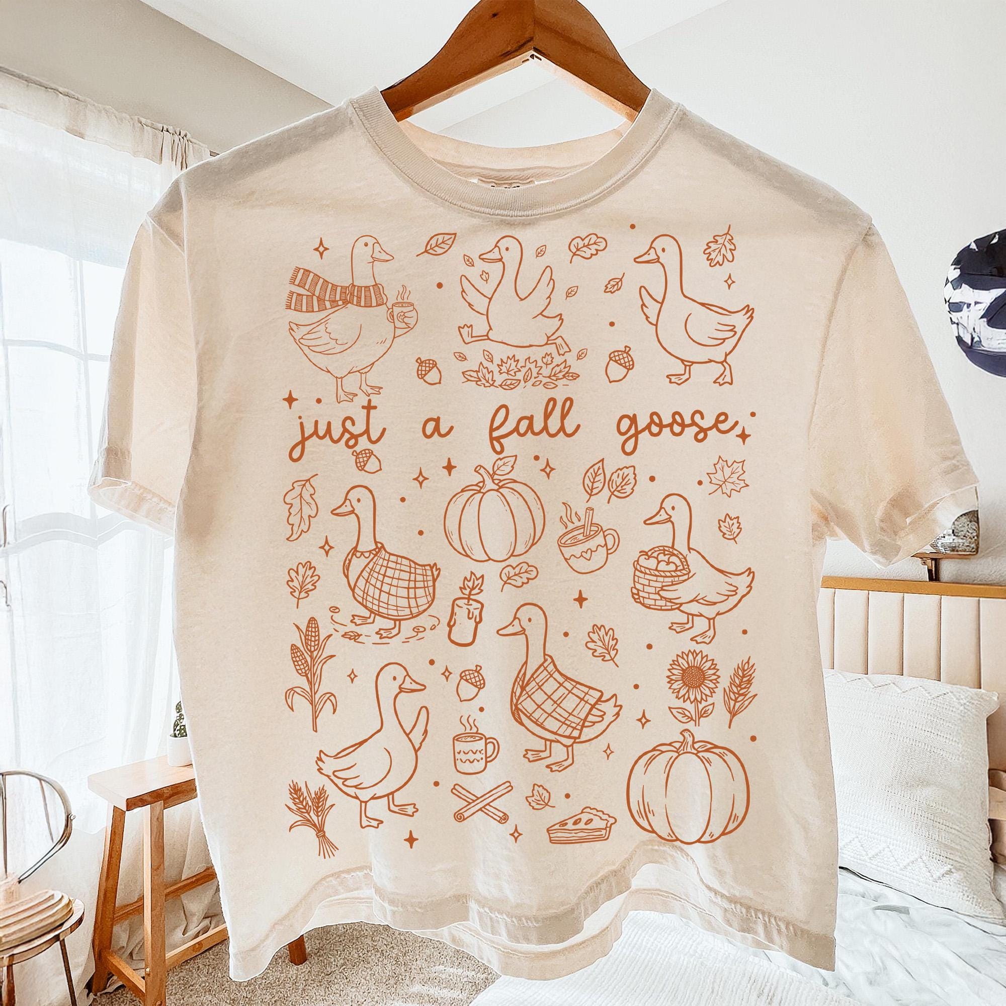 Fall Goose Shirt, Autumn Graphic Tee, Just a Fall Goose Top, Retro Farm ...