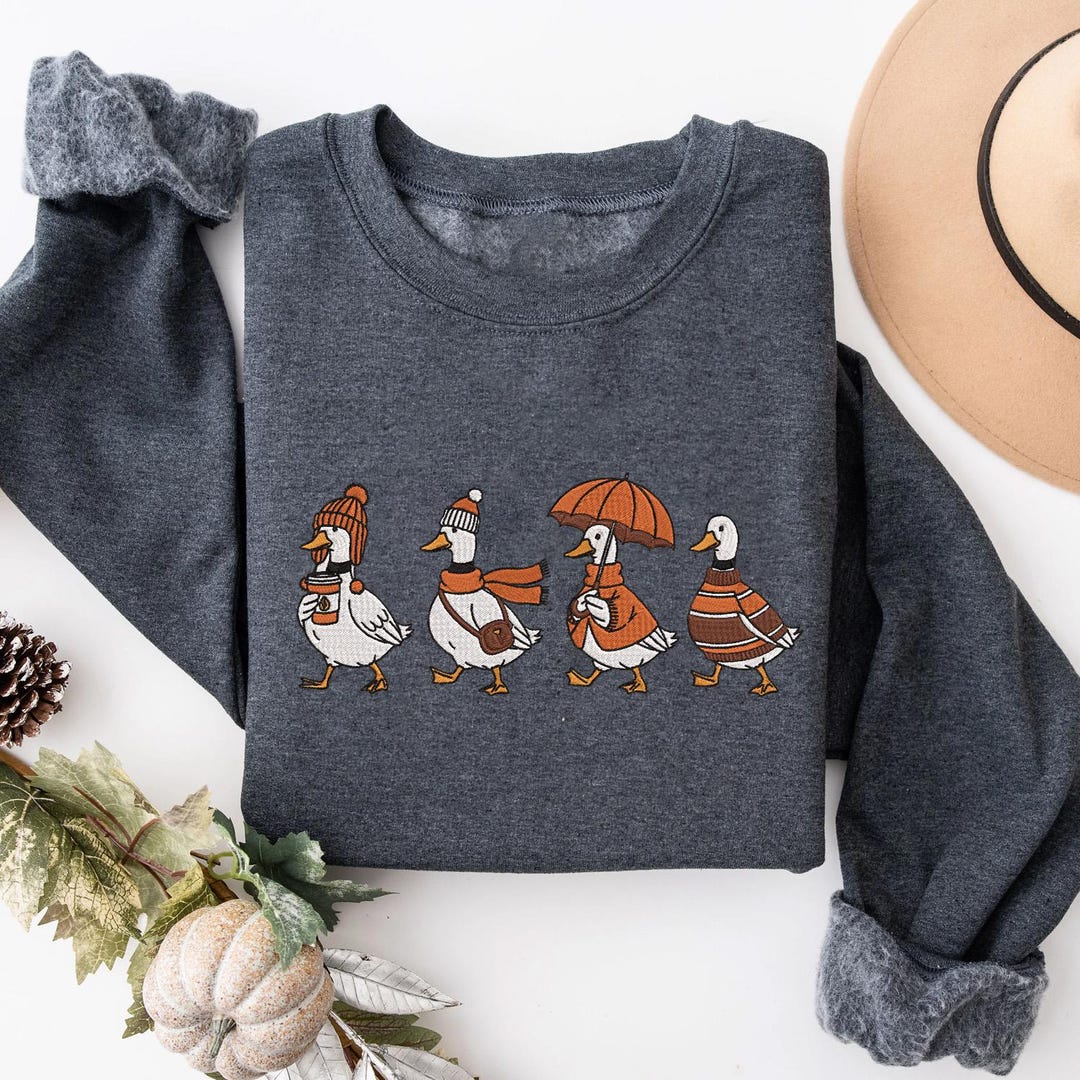 Embroidered Fall Goose Sweatshirt, Goose Sweater, Cute Goose Sweatshirt ...