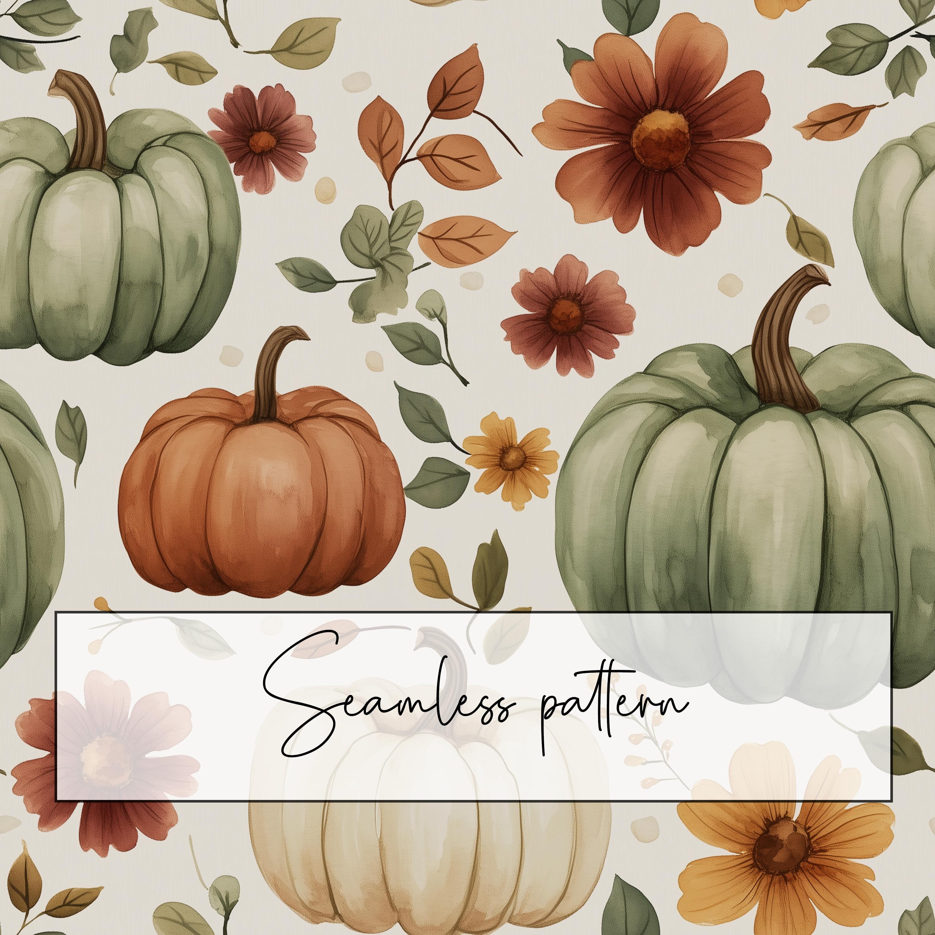 Moody Fall Pumpkin Floral Seamless Pattern, Brown and Green Autumn ...