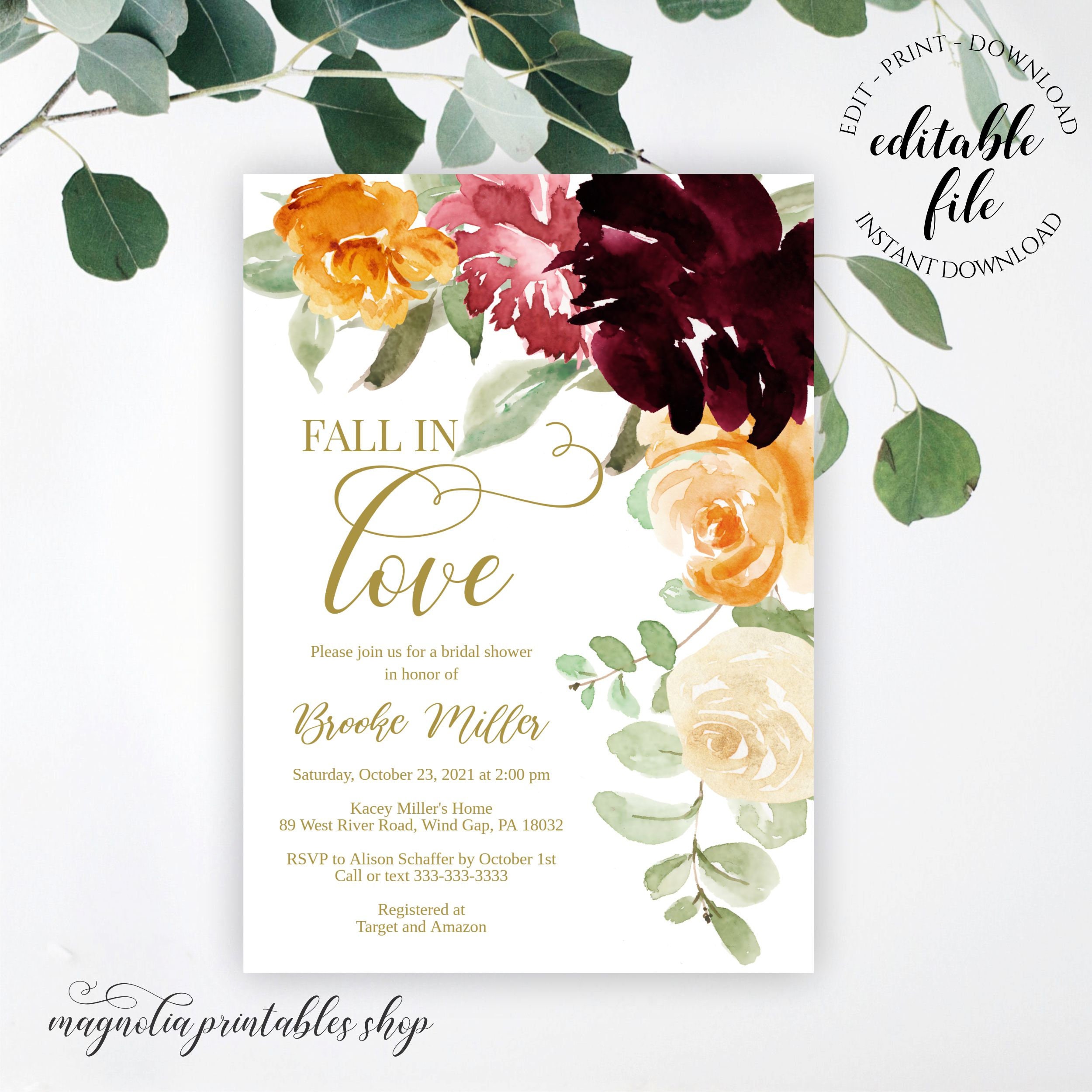 Editable Autumn Foliage Invitation Printable Fall In Love Bridal Shower ...