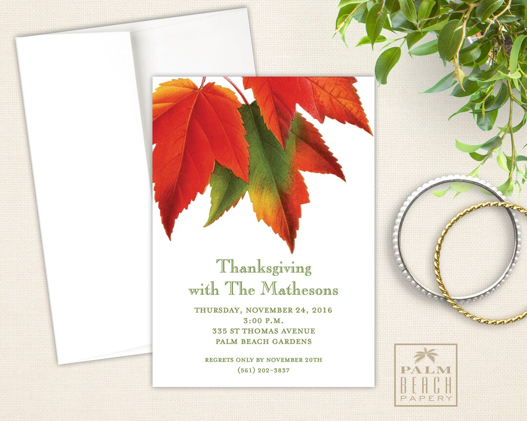 Autumn Leaves Invitation - Thanksgiving Dinner Invitation - Elegant ...