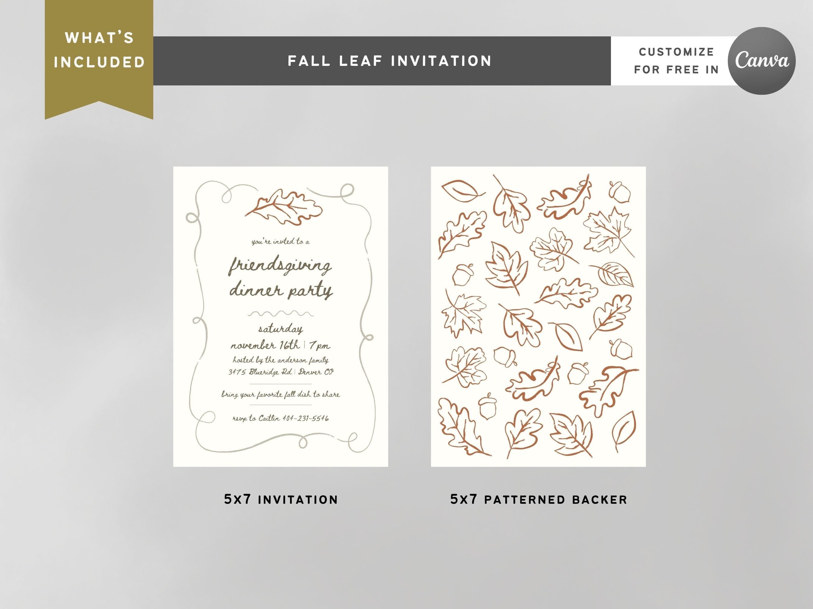 FRIENDSGIVING INVITATION, Autumn Fall Leaf Dinner Party Invite Template ...