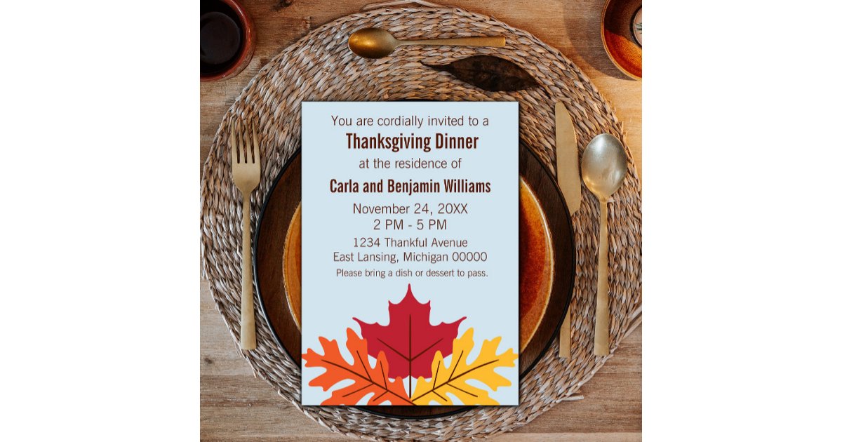Fall Leave Autumn Thanksgiving Dinner Invitations | Zazzle