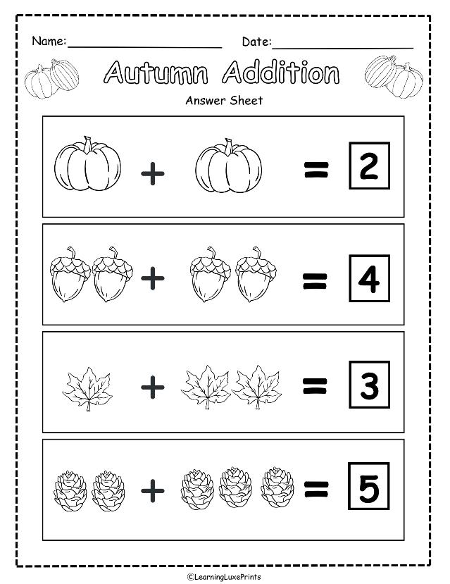 Fall addition worksheets for kindergarten – Artofit