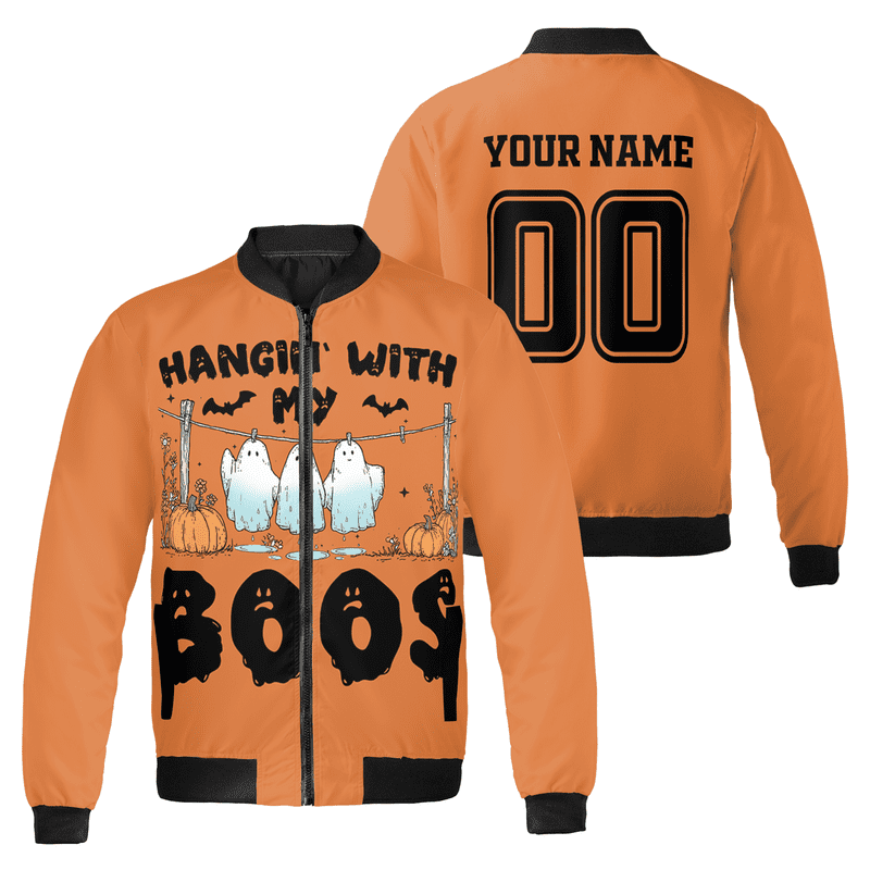 Custom Halloween Bomber Jacket – "Hangin' With My Boos" Ghost Design ...