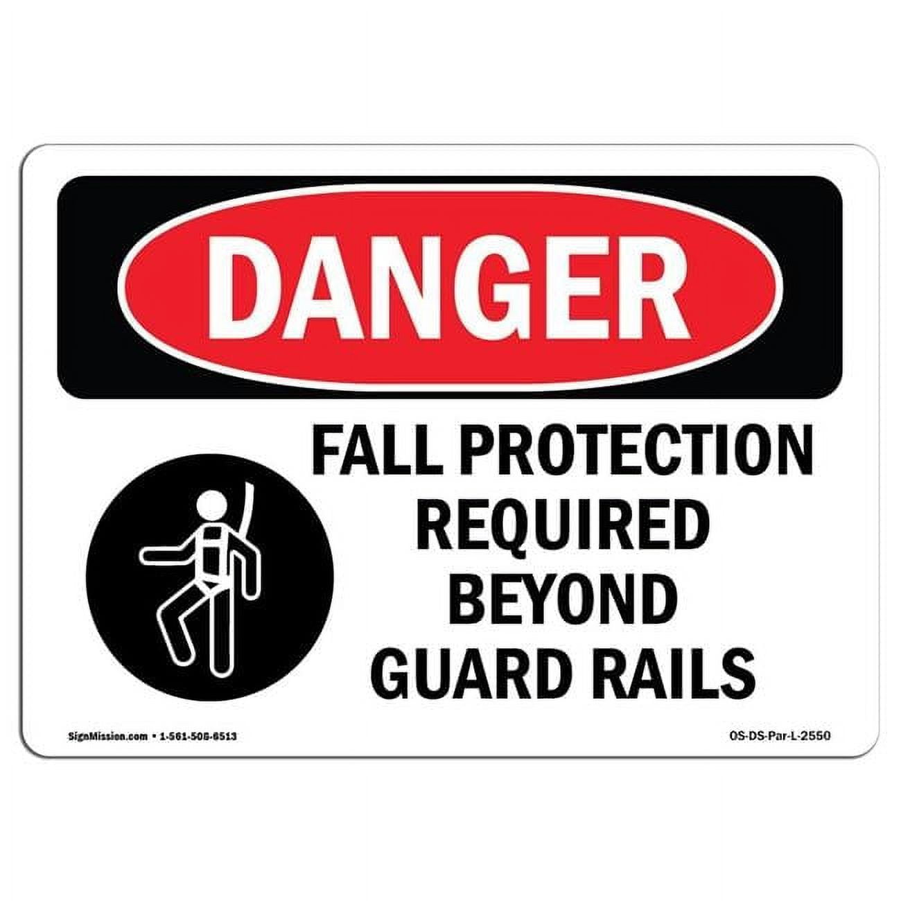 10 x 14 in. OSHA Danger Sign - Fall Protection Required Beyond ...