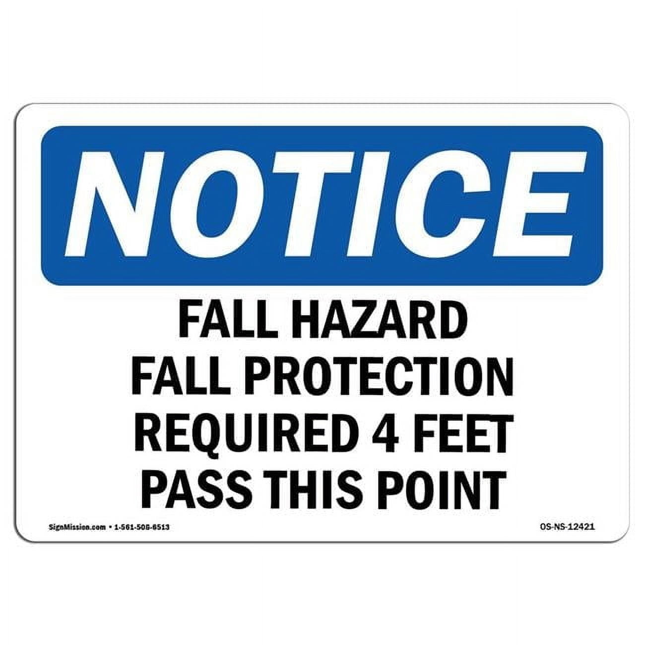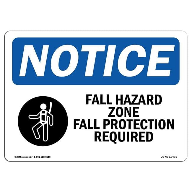 SignMission 10 x 14 in. OSHA Notice Sign - Fall Hazard Fall Protection ...