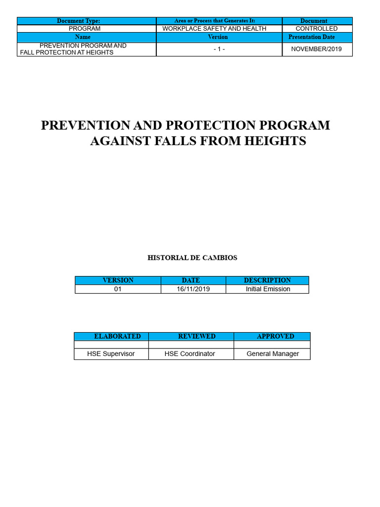 Fall Prevention and Protection Program For Working at Heights | PDF ...