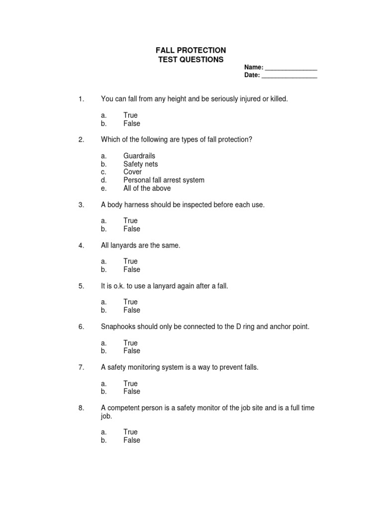 Fall Protection Quiz #1 Doc Template | pdfFiller