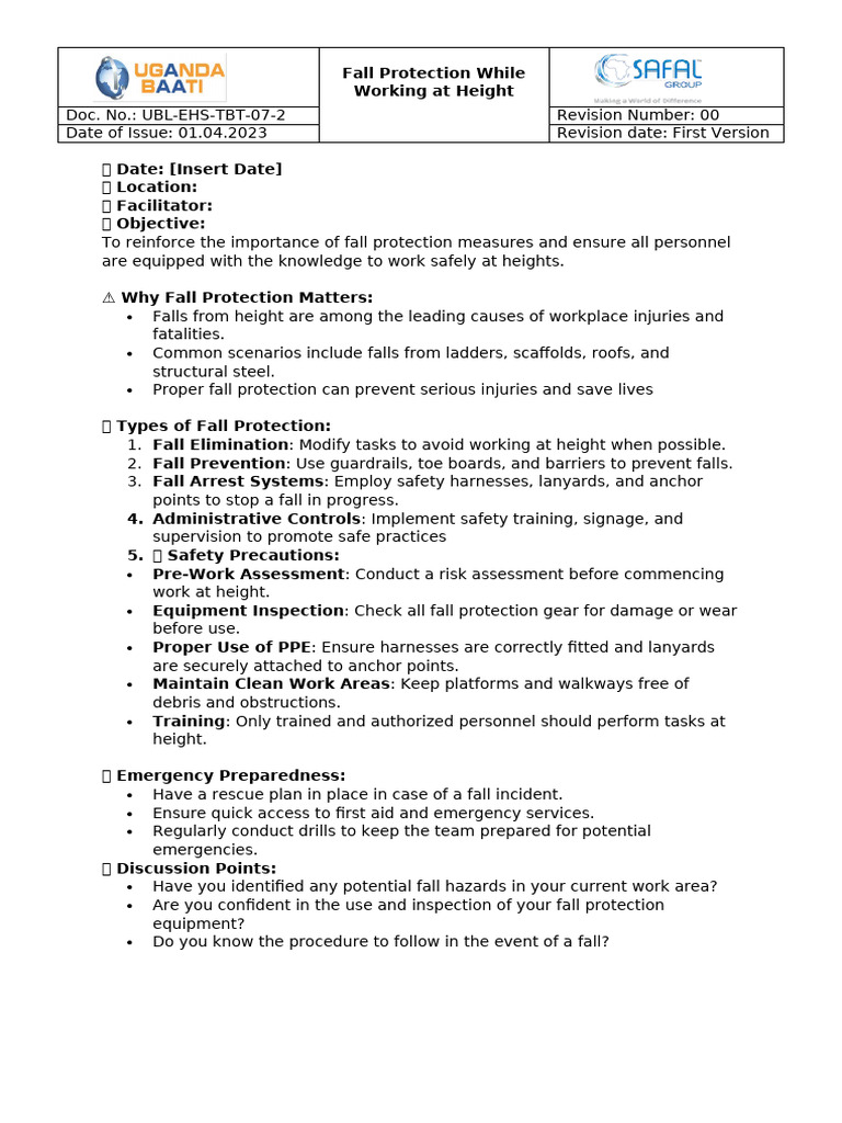 Toolbox Talk Fall Protection Template: Free and Customisable