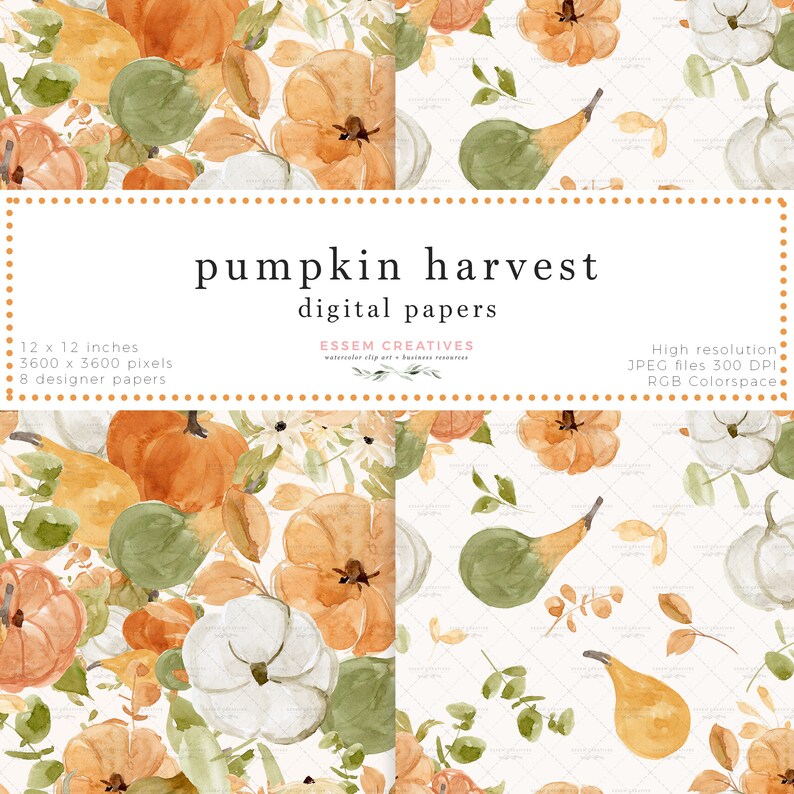 Pumpkin Floral Digital Paper Seamless Repeat Patterns Fall - Etsy