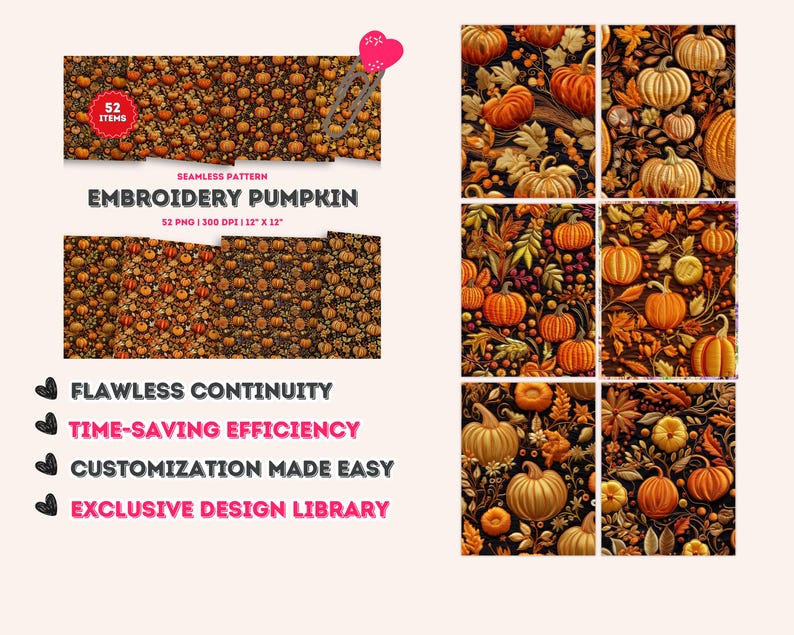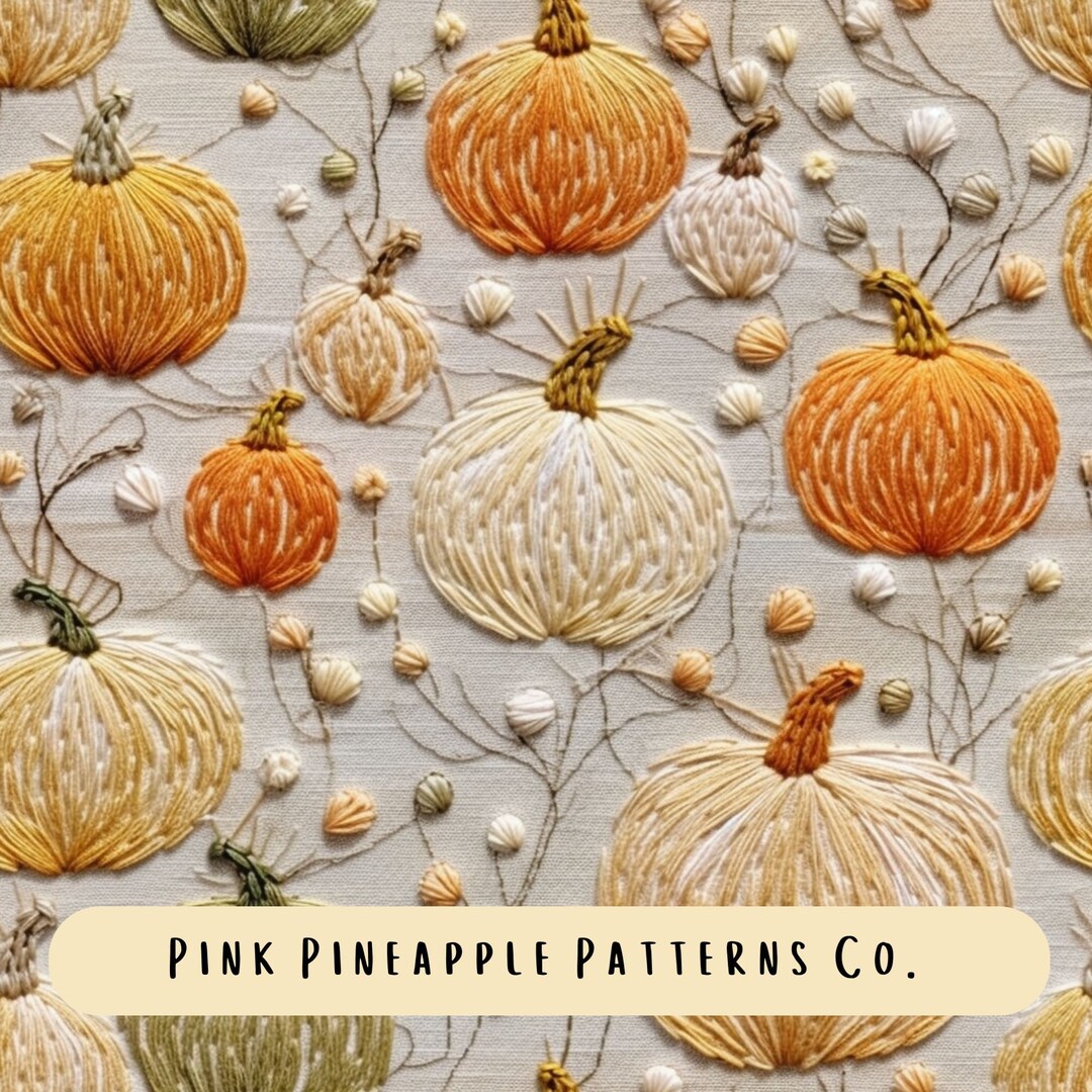 Pumpkin Embroidery Seamless Patterns, Fall Autumn Embroidery Digital ...