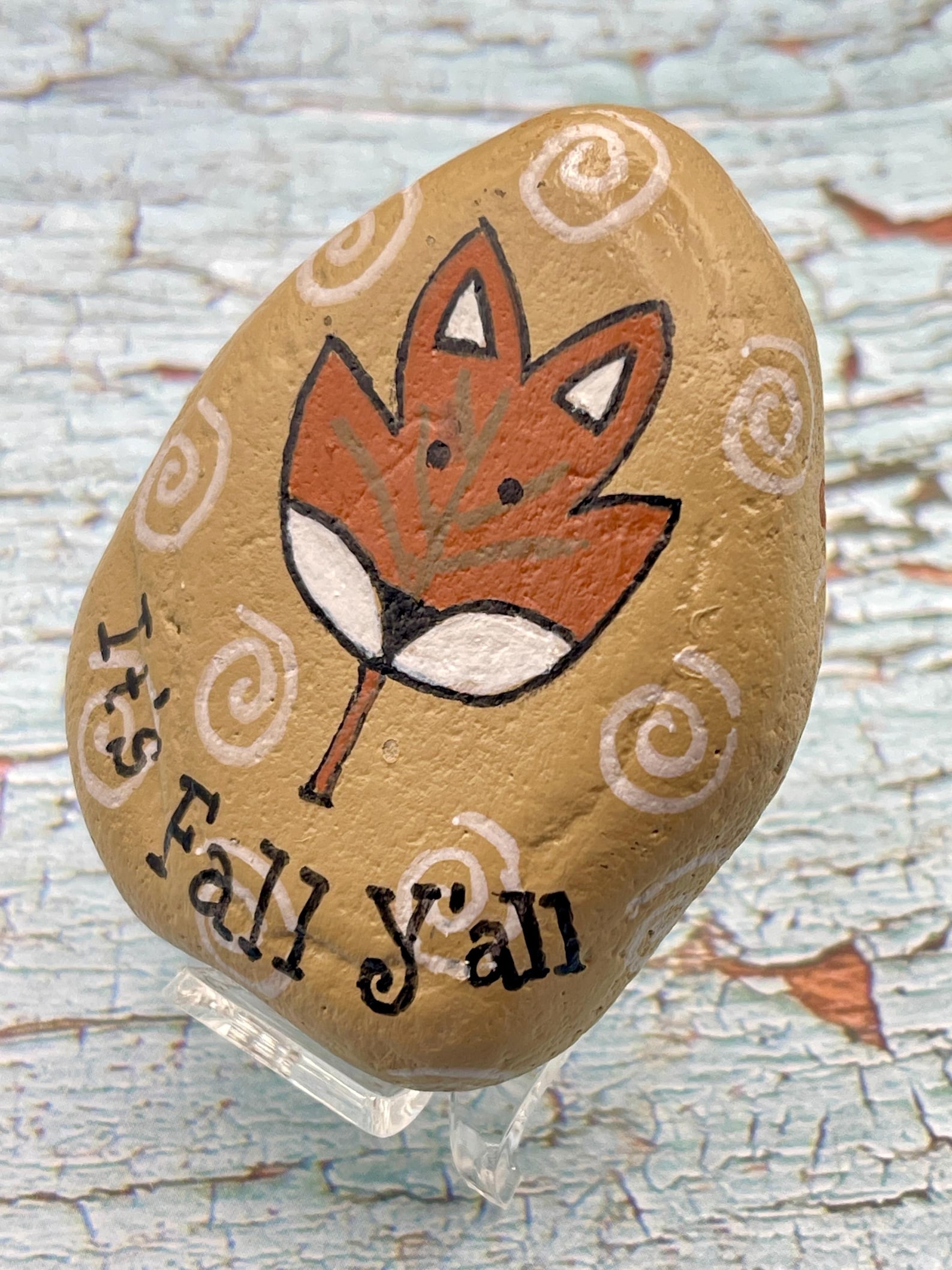 It's Fall Y'all Hand Painted Rock, Cute Whimsical Fox Autumn Leaf Rock ...