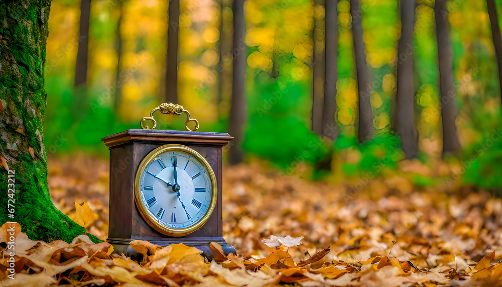 Premium AI Image | Alarm clock with autumn foliage end of daylight ...