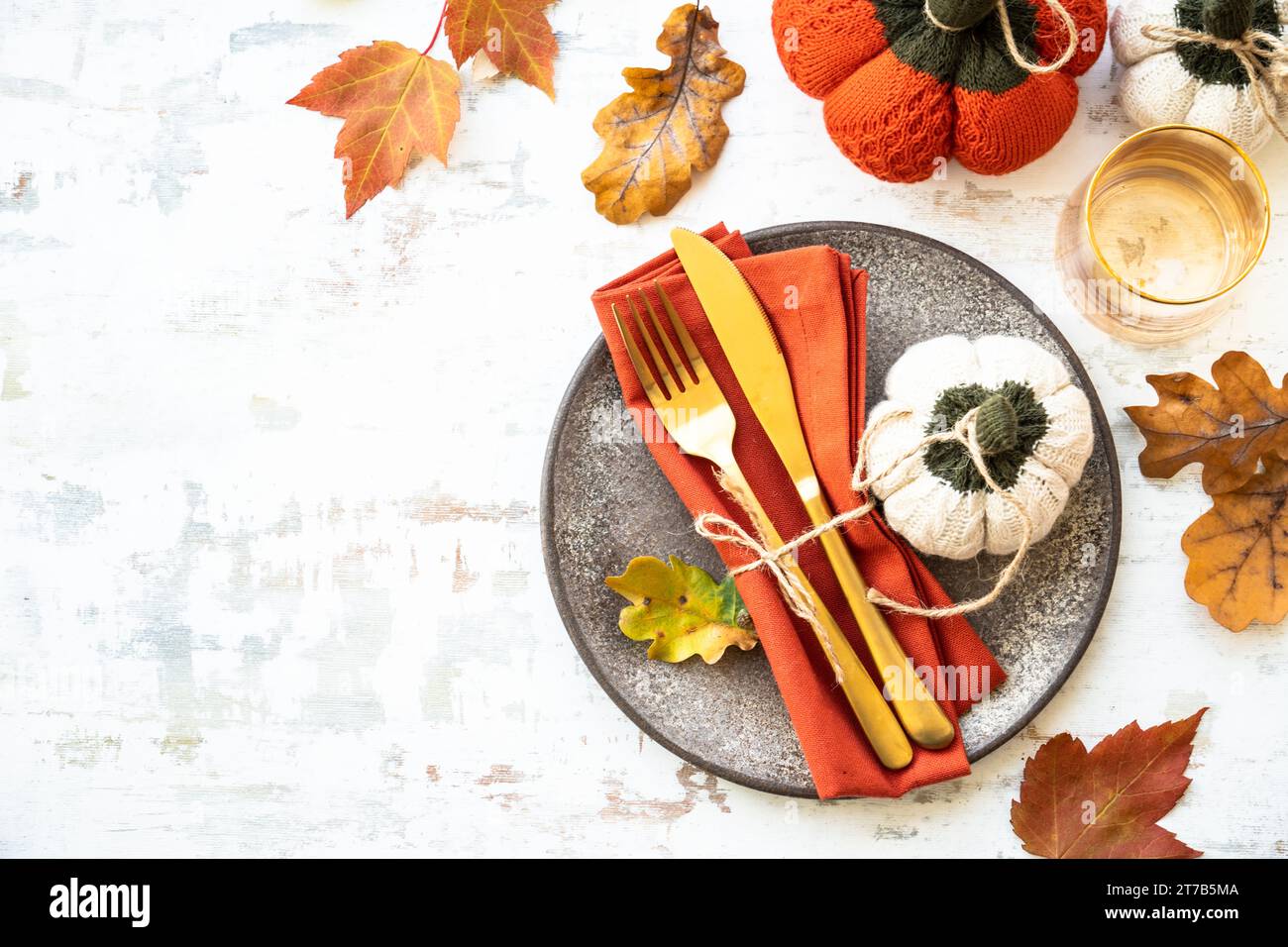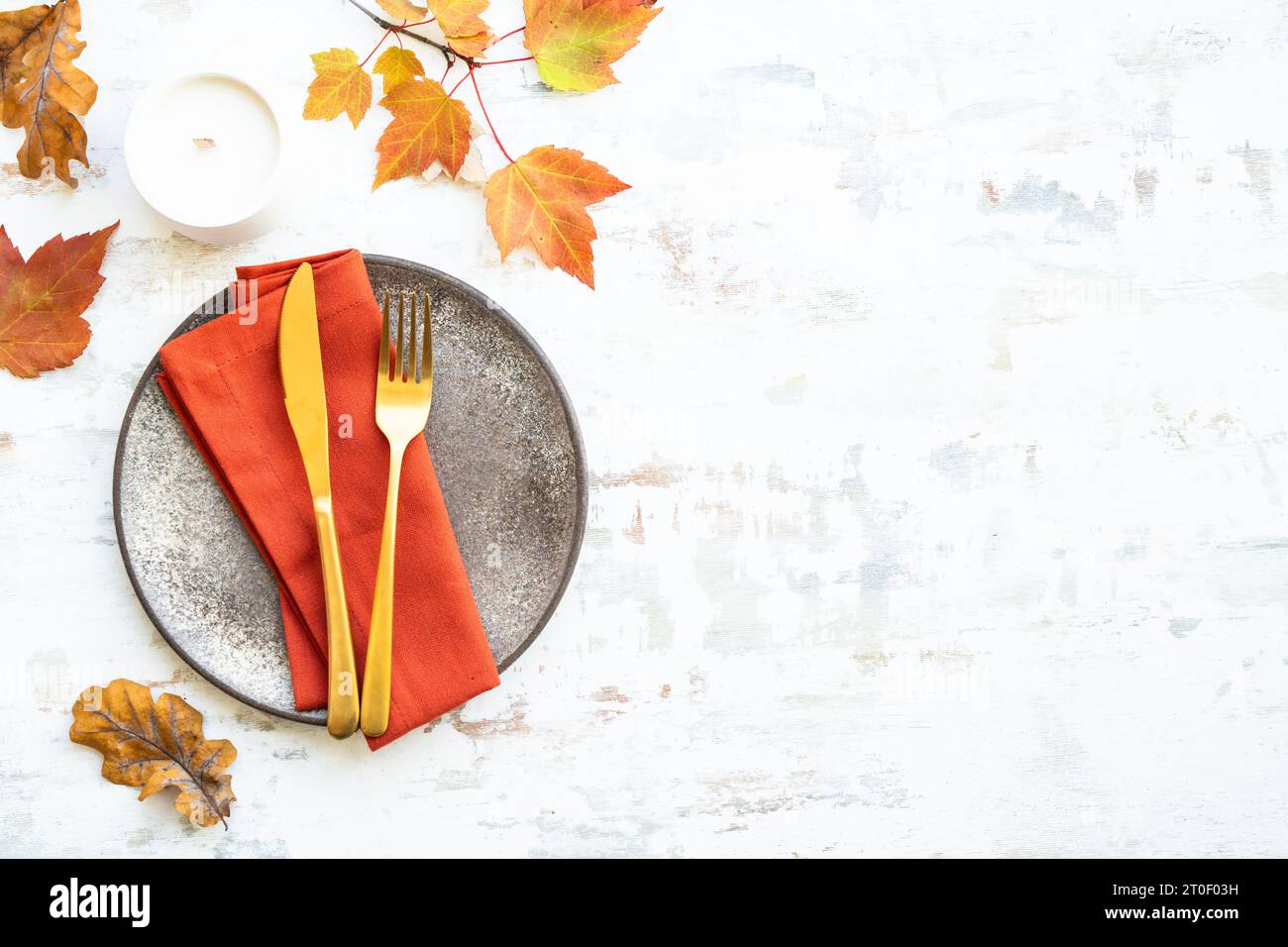 Autumn table setting on white background Stock Photo - Alamy