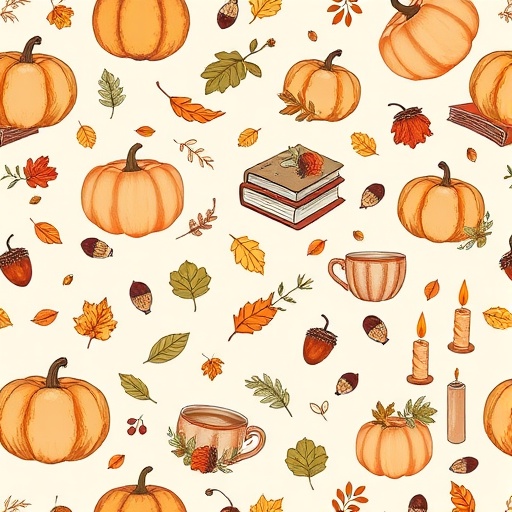 Autumn-Inspired Pattern Featuring Pumpkins, Leaves, Books, and Cozy ...