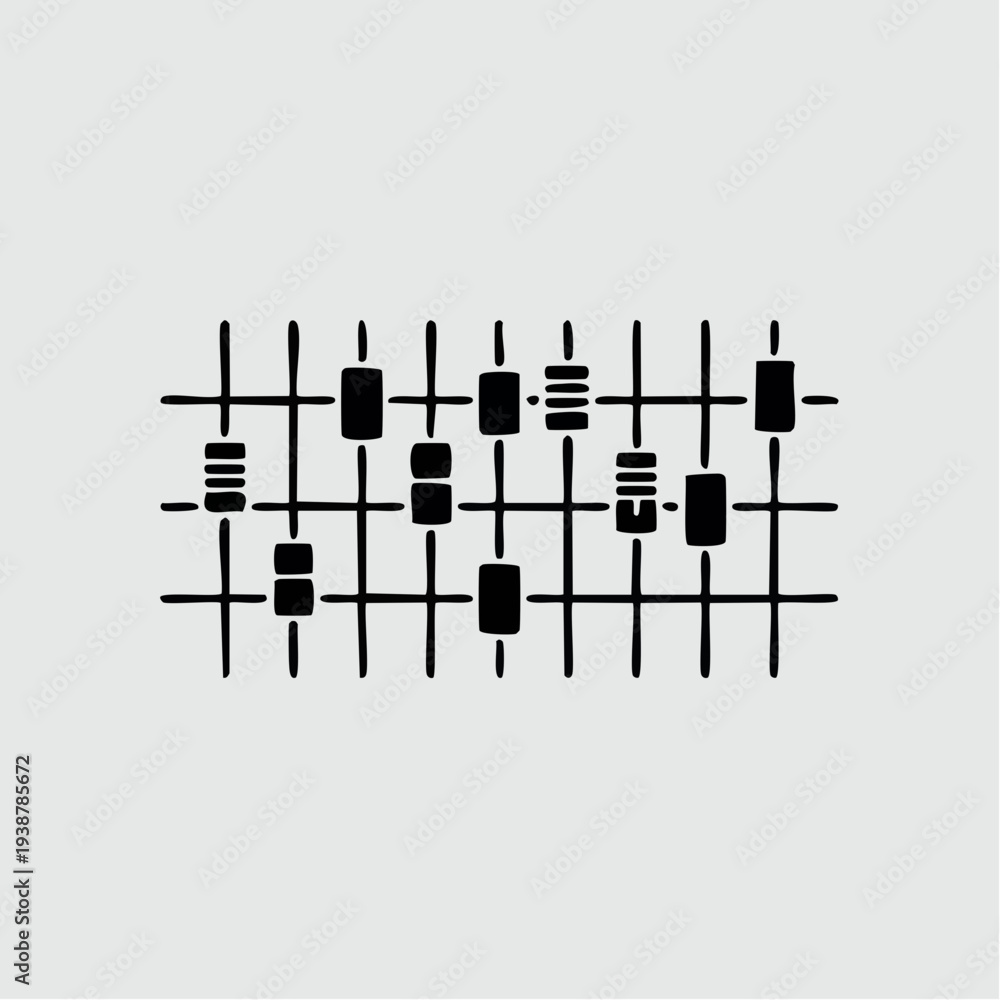 Camera panning tilting revealing black bars wave as colored code ...