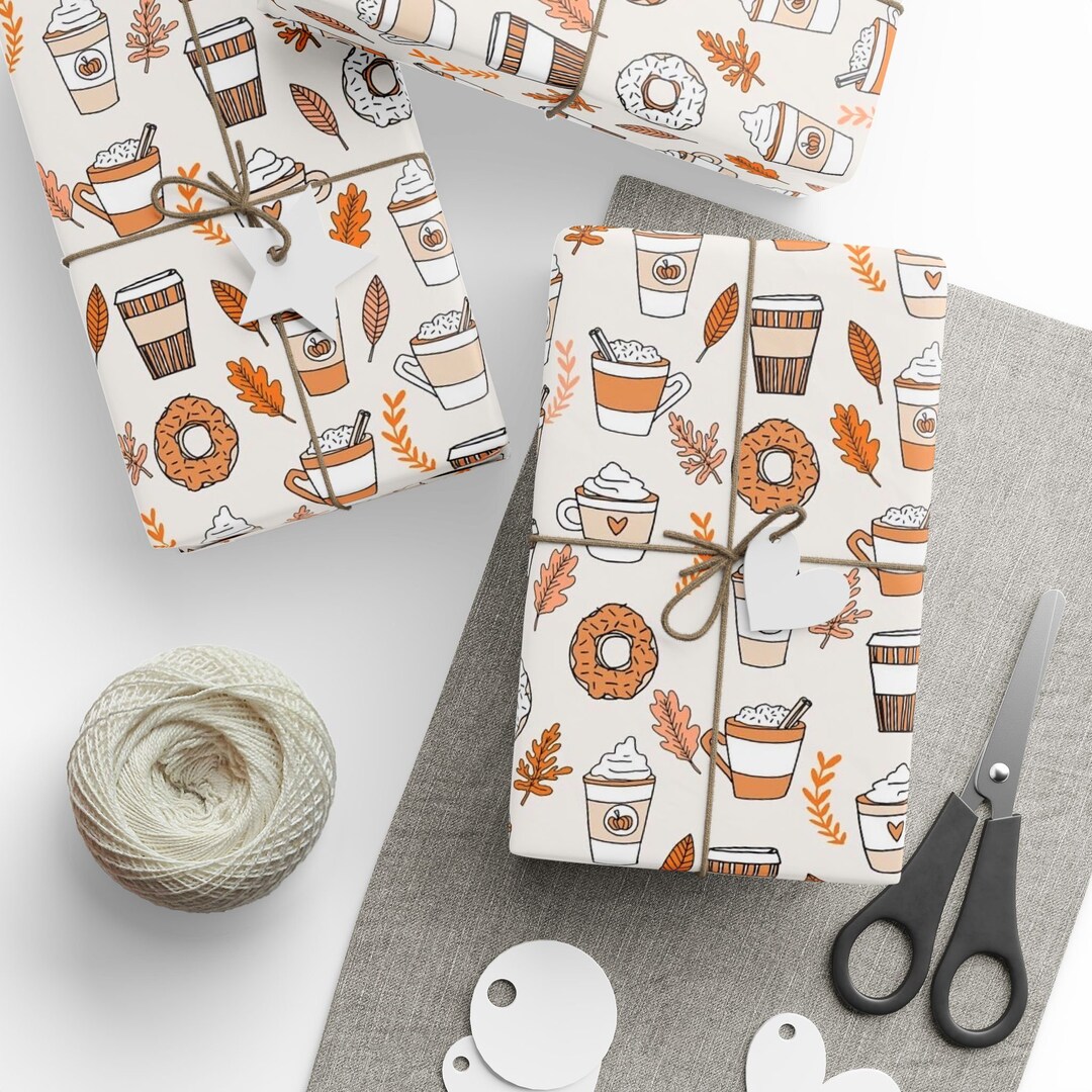 Fall Themed Wrapping Paper Coffee Wrapping Paper Orange and Black Gift ...