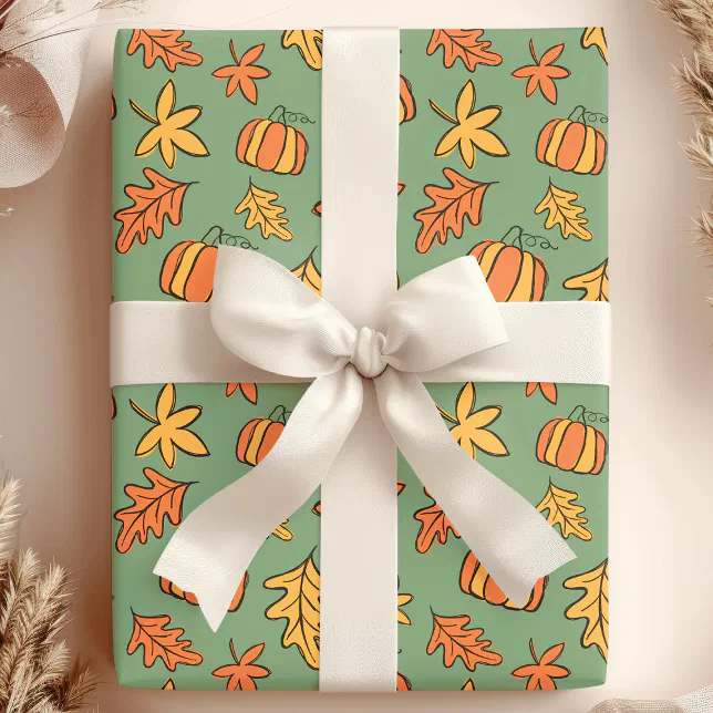Pumpkin and Fall leaves Tiled Fall Season Wrapping Paper | Fall season ...
