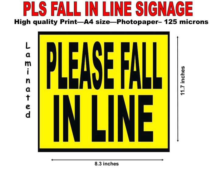 PLEASE FALL IN LINE LAMINATED SIGNAGE(A4 SIZE) | Lazada PH