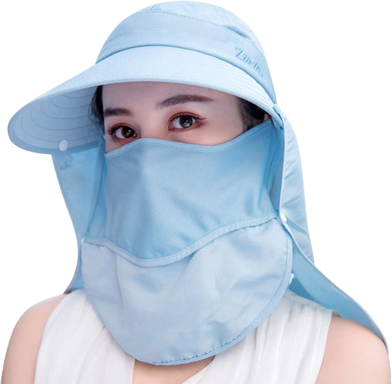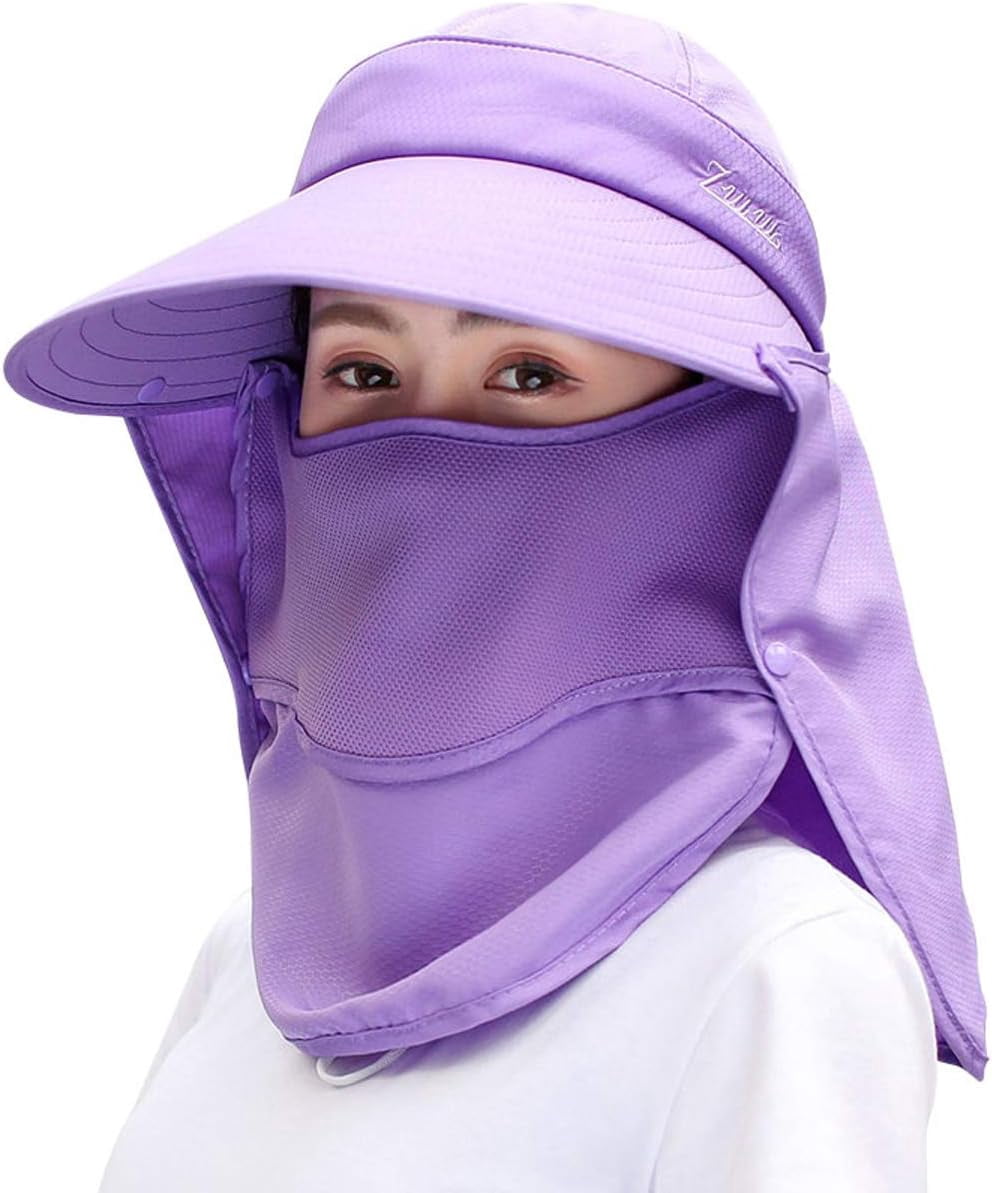 CAILDANL Women Wide Brim Face Mask Sun Hat Detachable Neck Face Flap ...