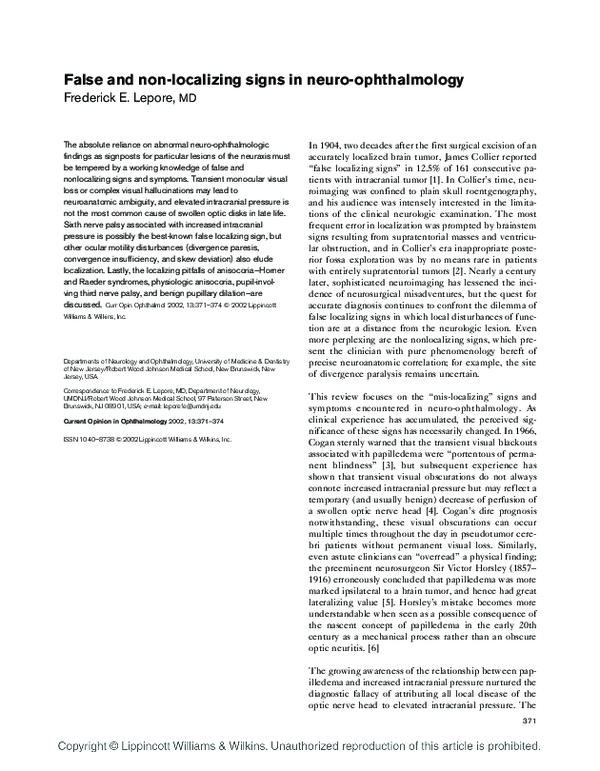 (PDF) False and non-localizing signs in neuro-ophthalmology