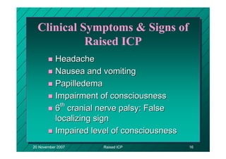 Surg351 presentation and management of raised intracranial pressure