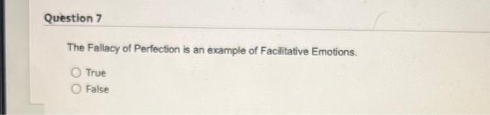 Question 7 The Fallacy of Perfection is an example of | Chegg.com