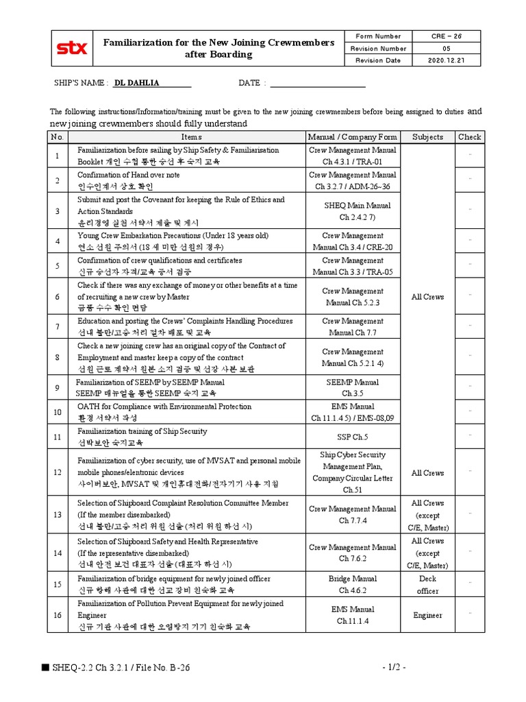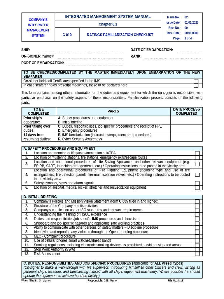 On-Board Familiarization and Training Checklist | PDF