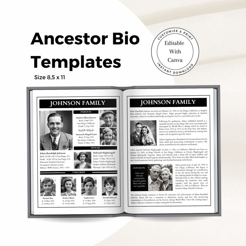 Ancestor Biography Canva Template Set | Family History Keepsake ...