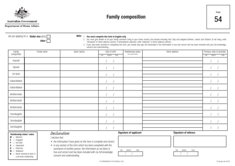 Family Composition Form 54 Guide | PDF | Government And Personhood | Family