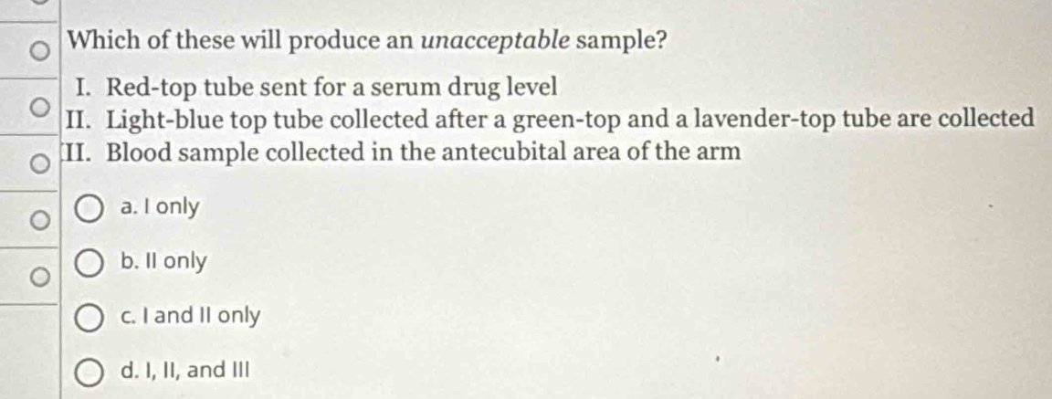 Solved: Which of these will produce an unacceptable sample? I. Red-top ...